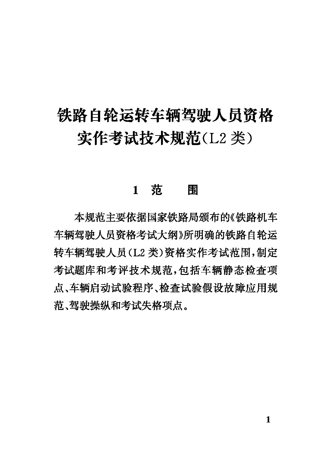 主要内容:为进一步规范铁路自轮运转车辆驾驶资格实作考试技术标准,提升铁路自轮运转车辆驾驶人员实际操作技术水平,国家铁路局装备技术中心(国家铁路局铁路机车车辆驾驶人员资格考试中心)组织编写了《铁路自轮运转车辆驾驶人员资格实作考试技术规范》。本规范包括大型养路机械(L2类)和轨道作业车(L3类),明确了自轮运转车辆资格考试静态检查项点、启动试验程序、检查与试验假设故障、驾驶科目行车凭证假设应用规范、驾驶作业项点等内容。