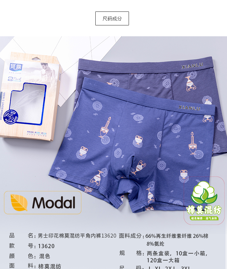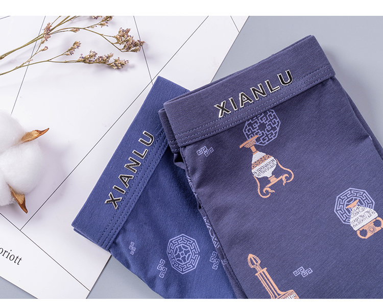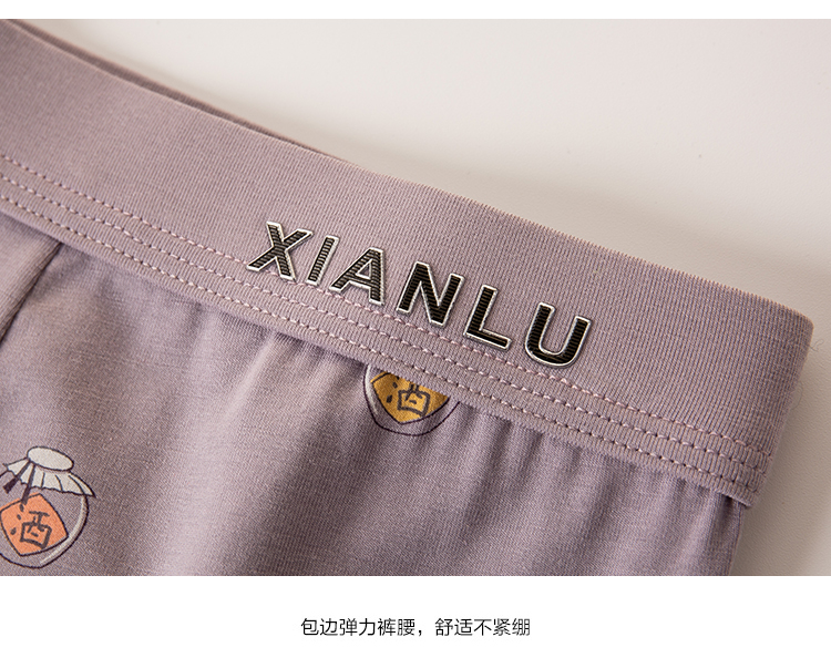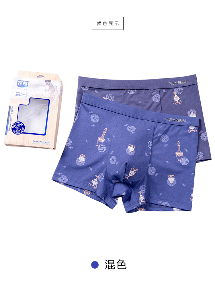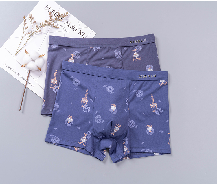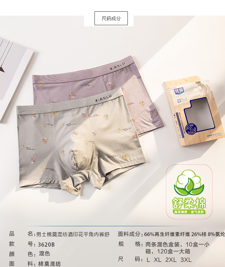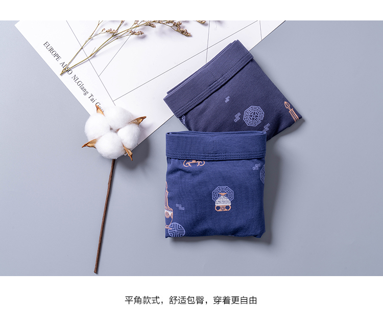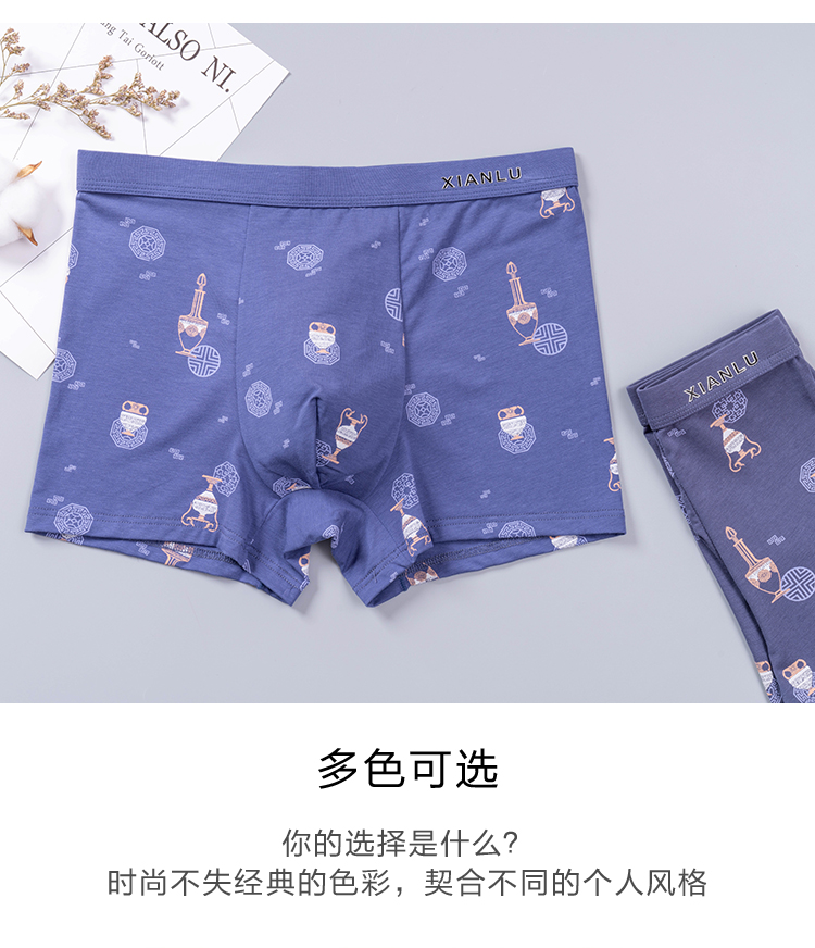无积分赠品【特价】男士莫木代尔棉混纺茶酒国潮印花平角内裤3620A/3620B/13620