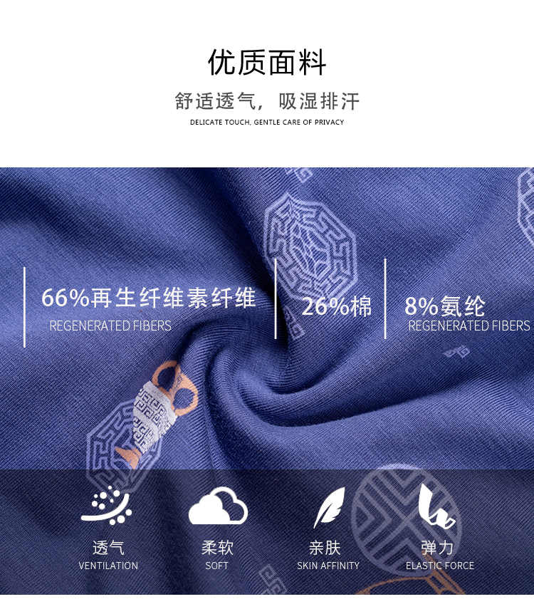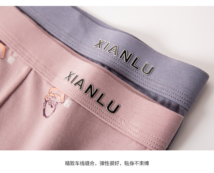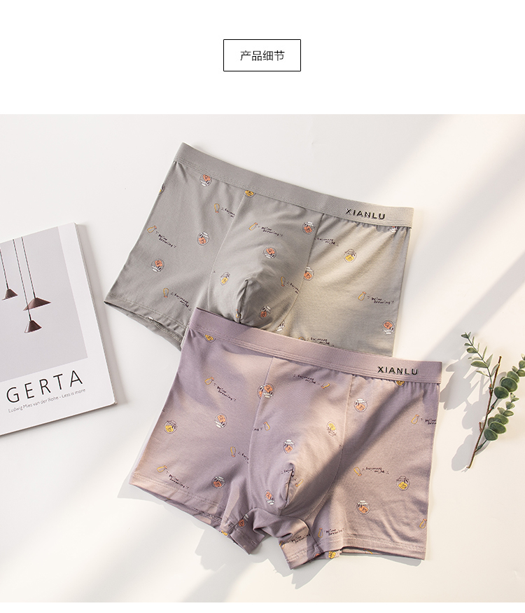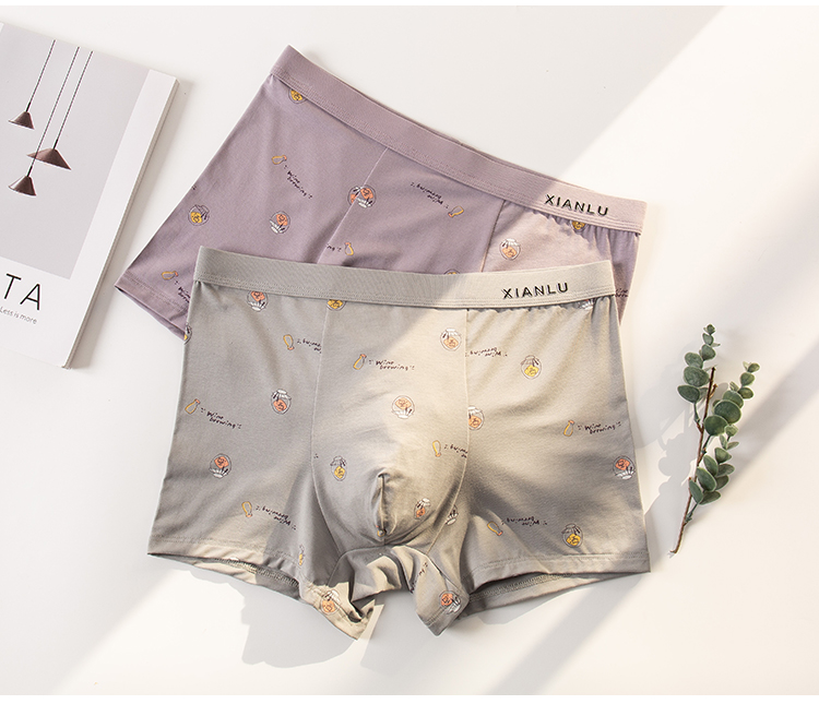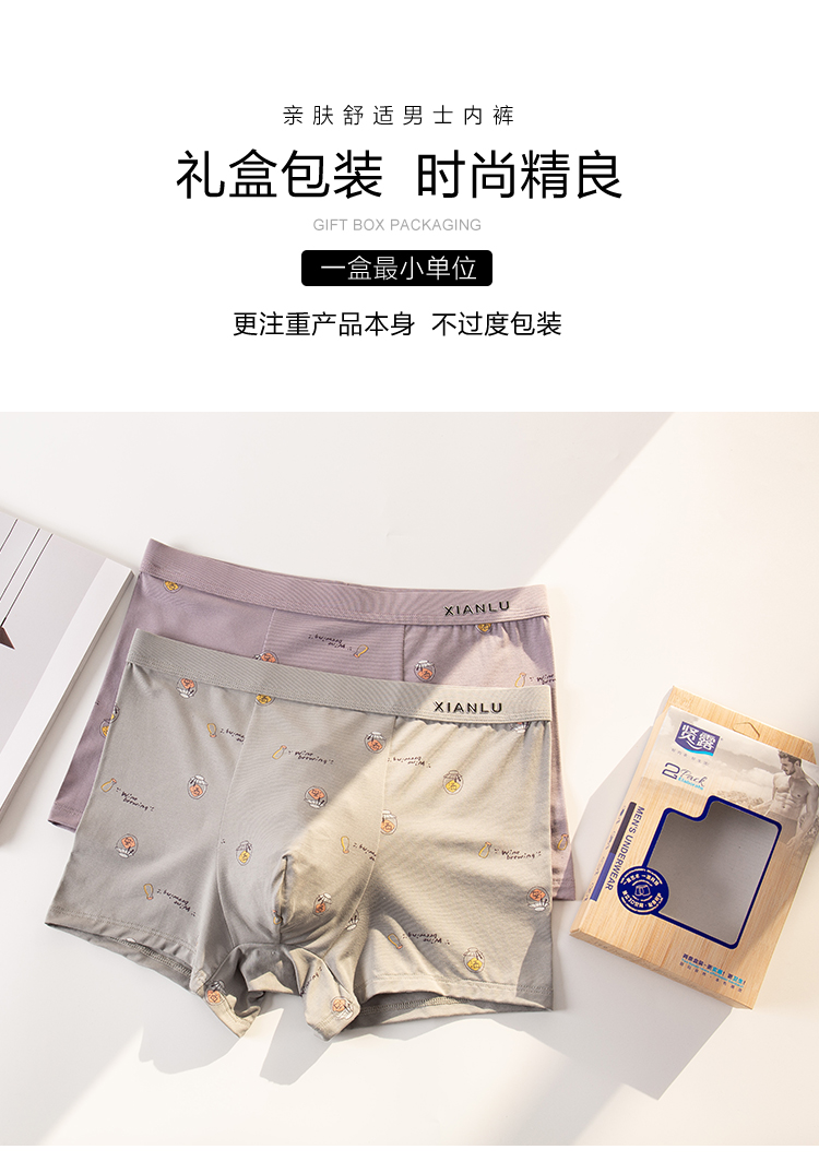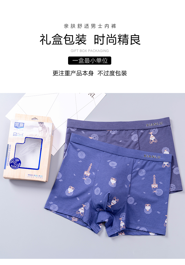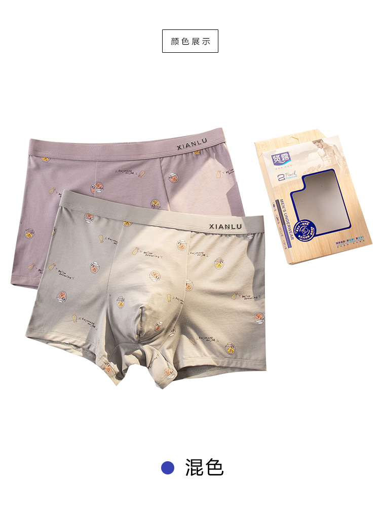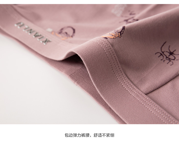 无积分赠品【特价】男士莫木代尔棉混纺茶酒国潮印花平角内裤3620A/3620B/13620