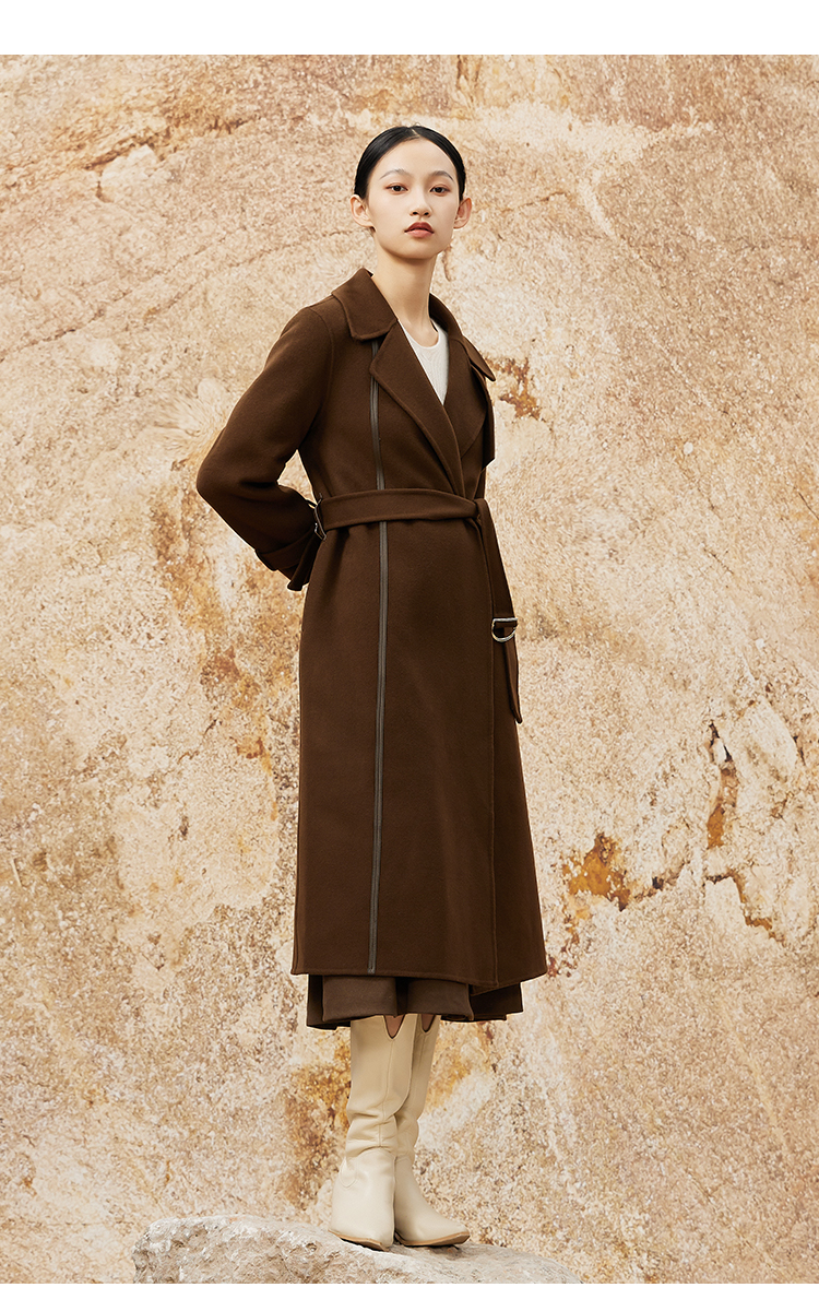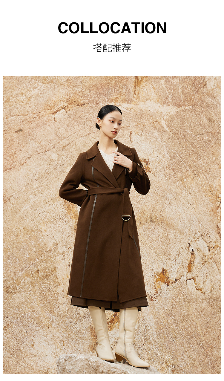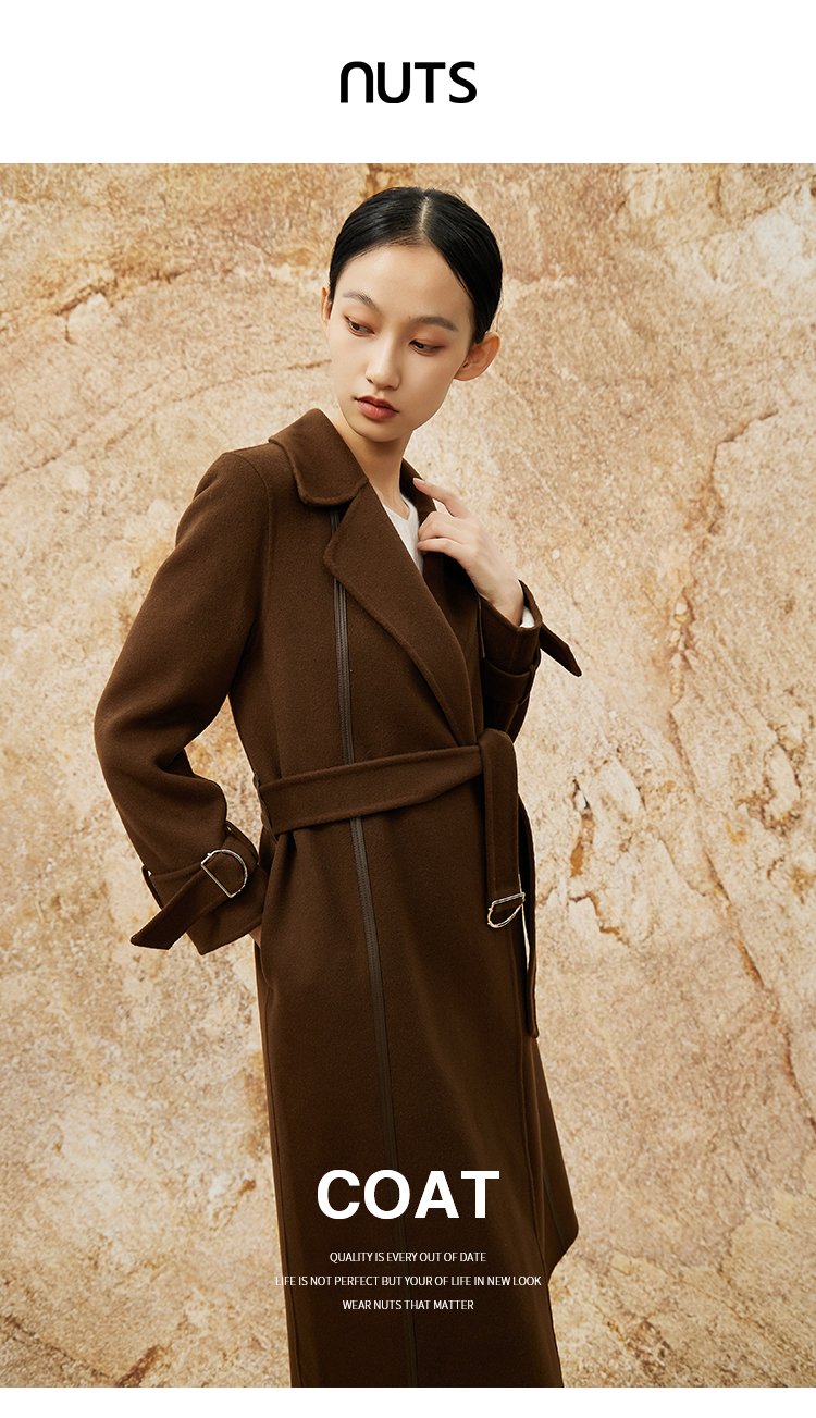 NUTS冬季新品时尚纯色通勤高级保暖手工呢料长外套女342152251
