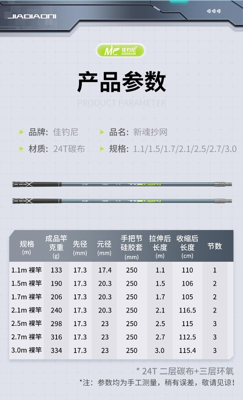 佳钓尼新魂抄网杆套装二代超轻超硬碳素捞鱼网兜钓鱼全套伸缩折叠