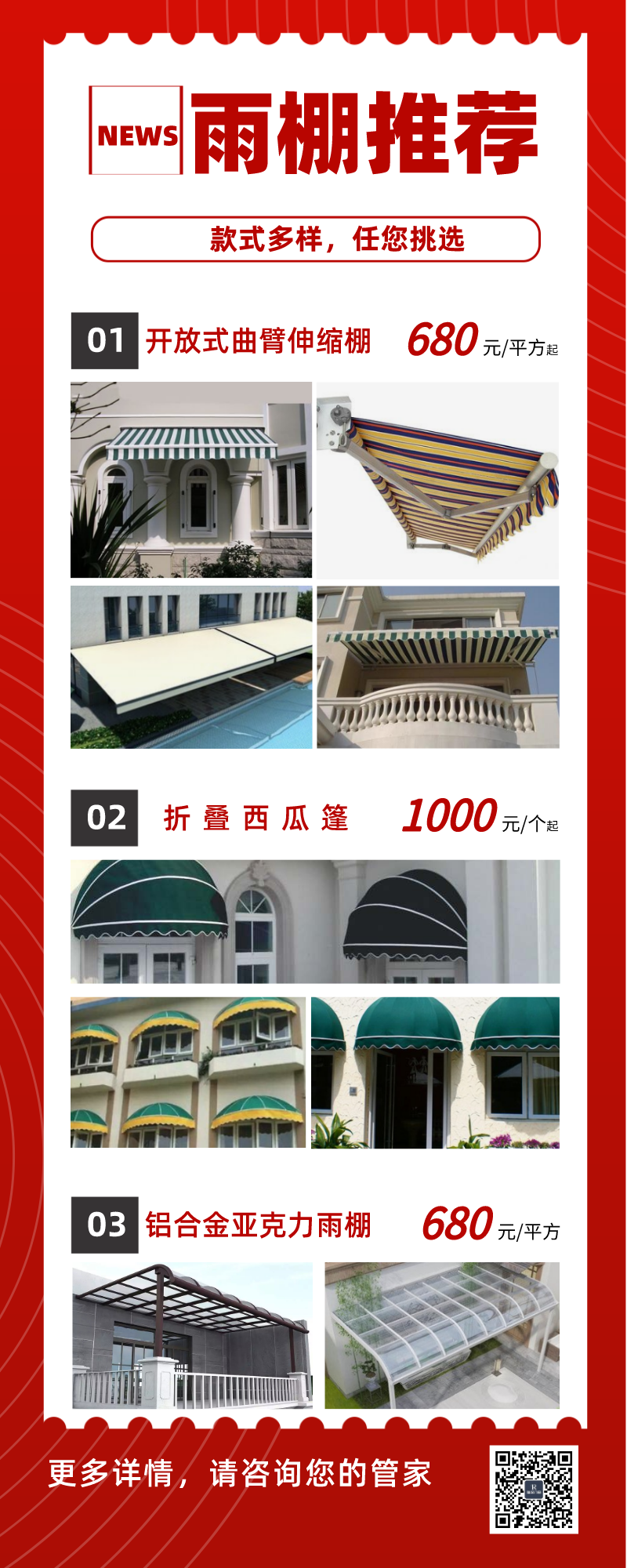【雨棚优选】款式多样 任您挑选
