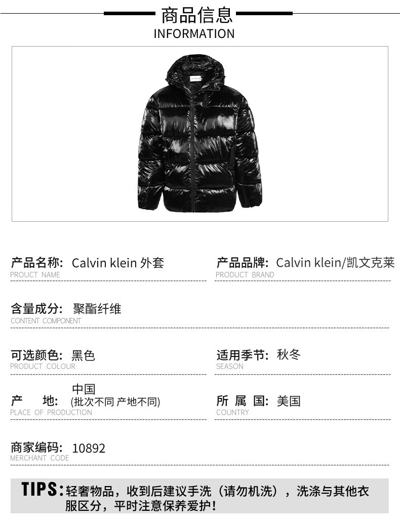 卡尔文·克莱恩(Calvin Klein) 男装 秋冬款休闲时尚外套 10892
