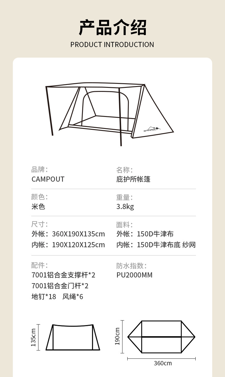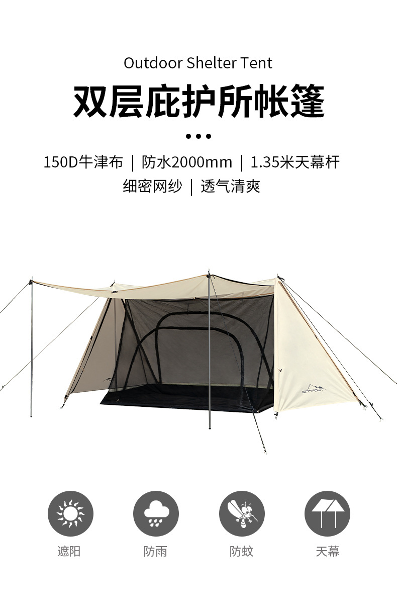 【露营专场】CAMPOUT牛津布帐篷户外露营庇护所防雨防晒防风米色野营遮阳棚