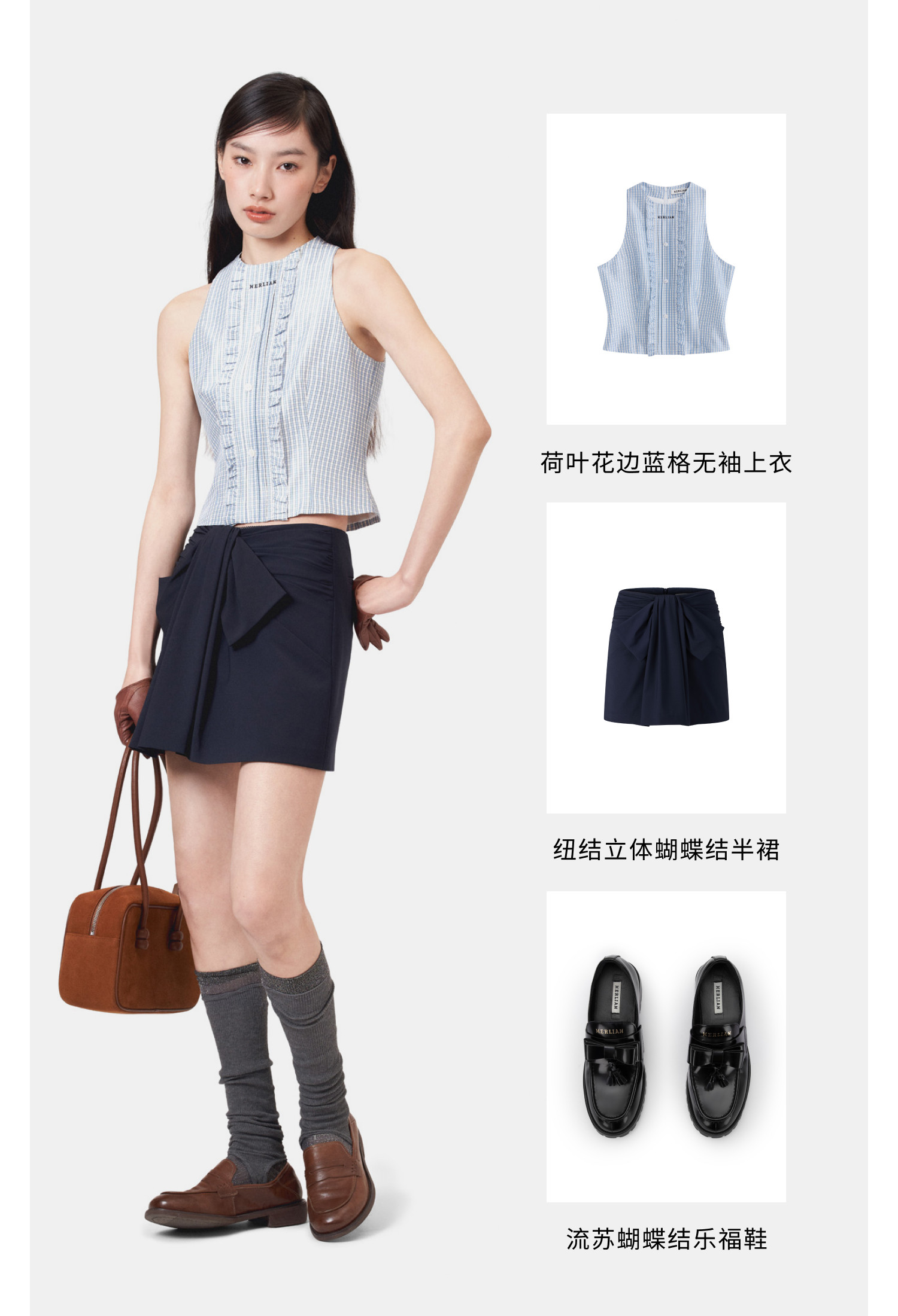 HERLIAN 2026年夏季新品纽结立体蝴蝶结西装半裙女A字裙短裙