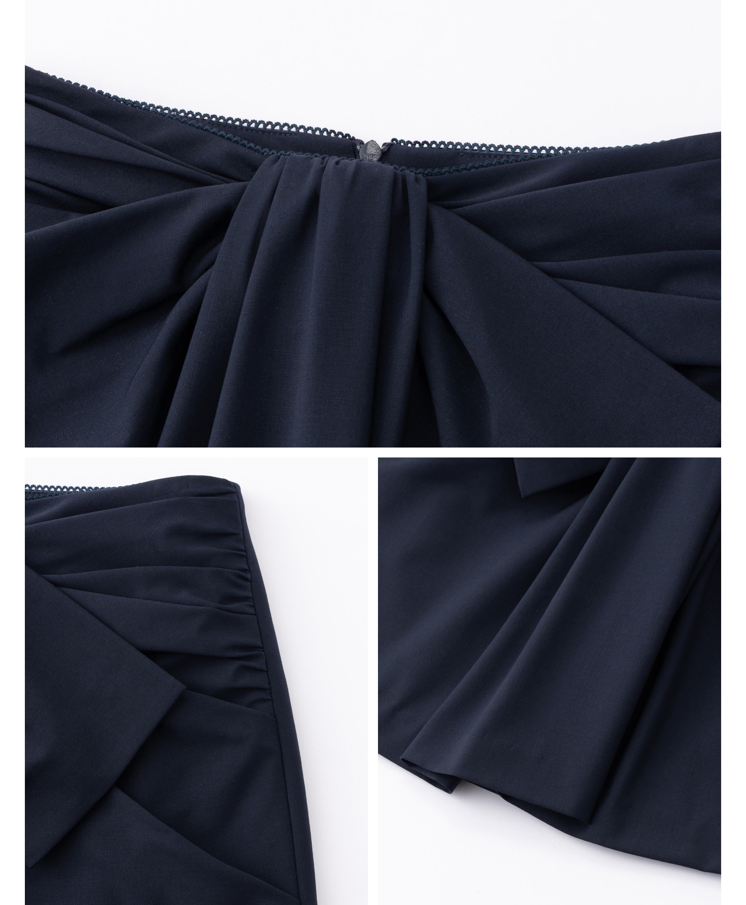 H2ESSKB083GY蝴蝶结装饰不规则百褶长裙