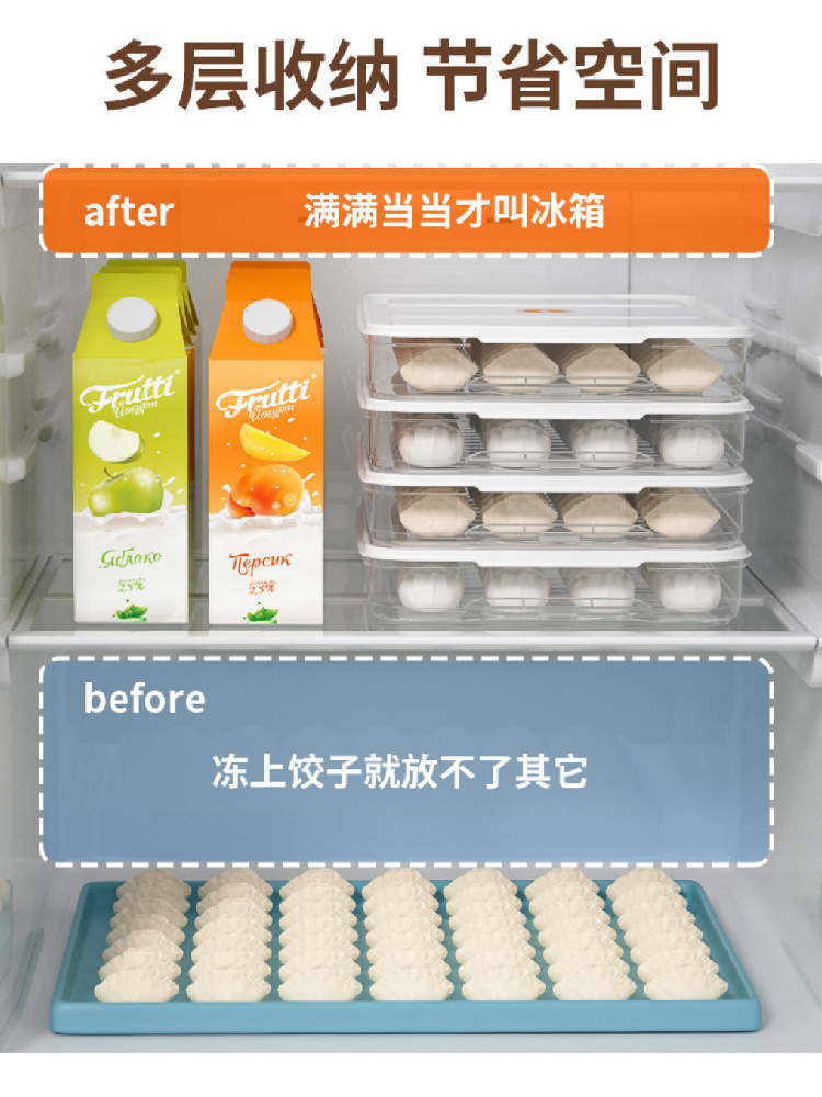 【多层饺子盒】厨房家用食品级冷冻盒鸡蛋盒 馄饨水饺保鲜盒速冻冰箱