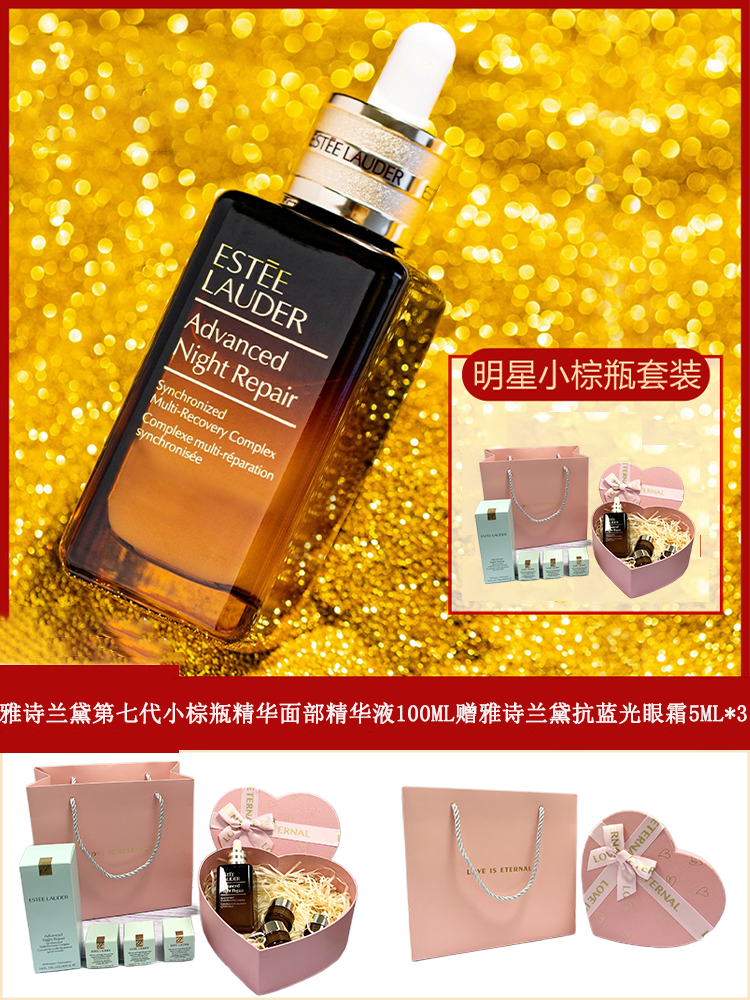 【品牌授权】爆款礼盒 雅诗兰黛第七代小棕瓶精华面部精华液100ml赠雅诗兰黛抗蓝光眼霜5ml3 情人节礼品送女朋友老婆生日礼物