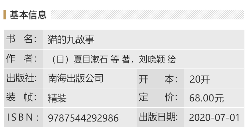 本书是日本现代短篇小说集,精选夏目漱石《猫之墓》、宫泽贤治《橡子与山猫》等九篇日本大家所著的“猫”文学。
