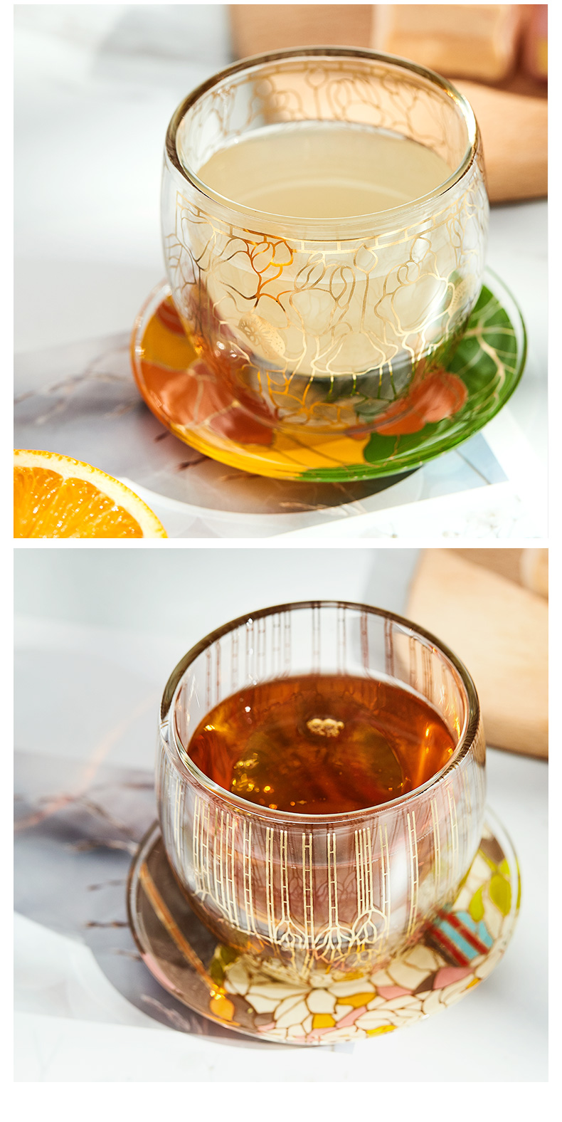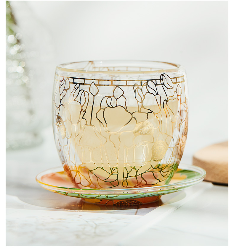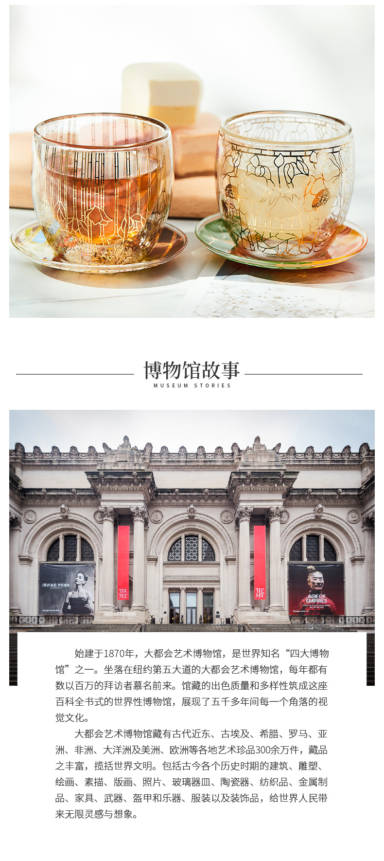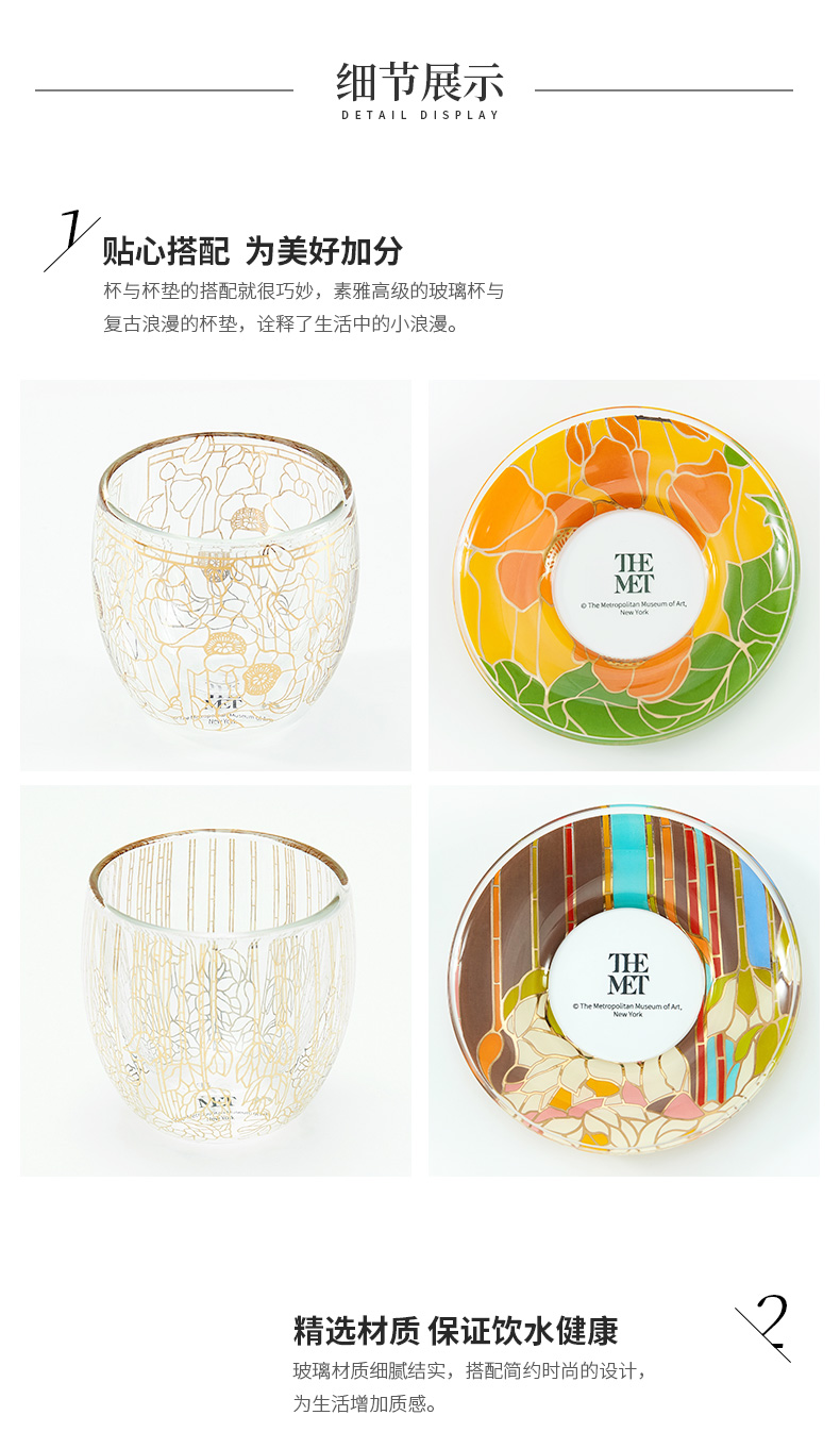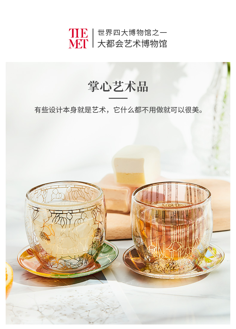 大都会艺术博物馆 Tiffany系列烫金双层玻璃对杯带杯垫套装创意礼物
