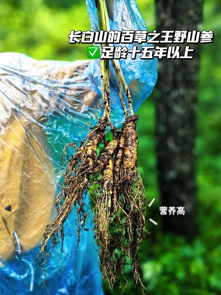 特别是那种在深山老林里自然长了15年以上的野山参,营养超级棒!