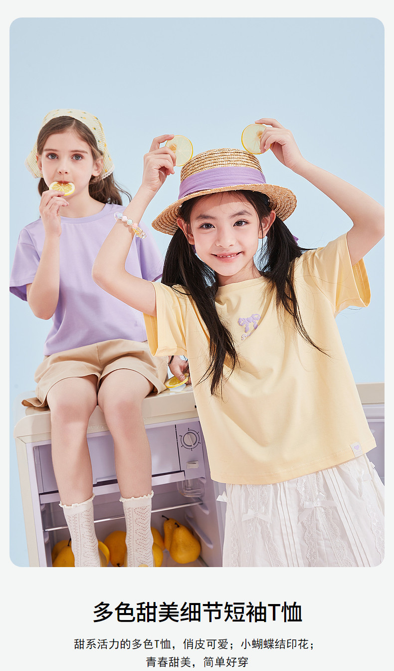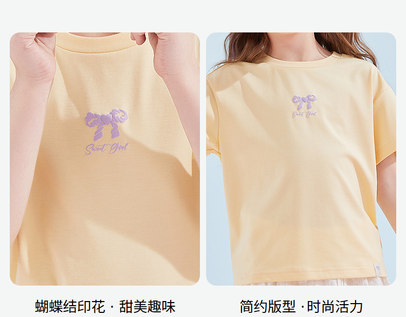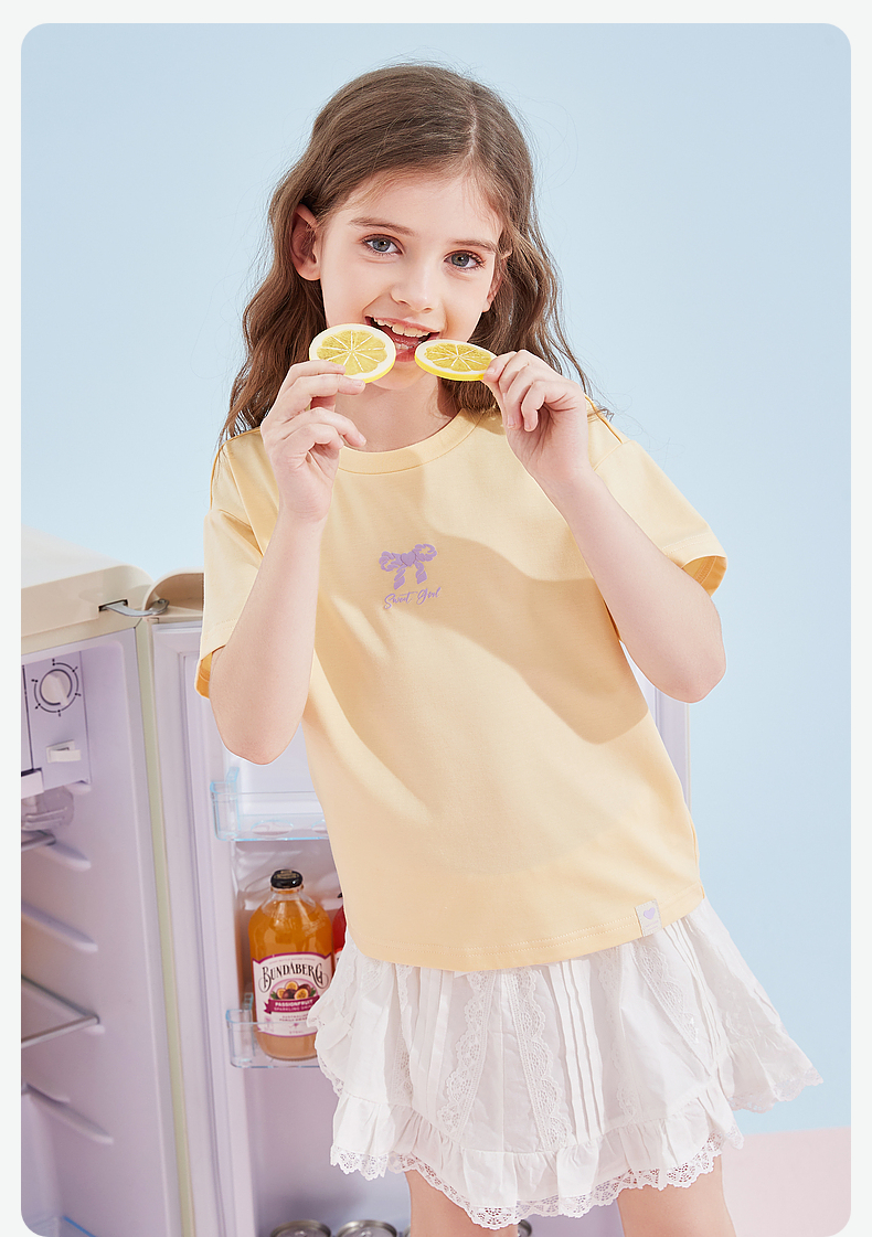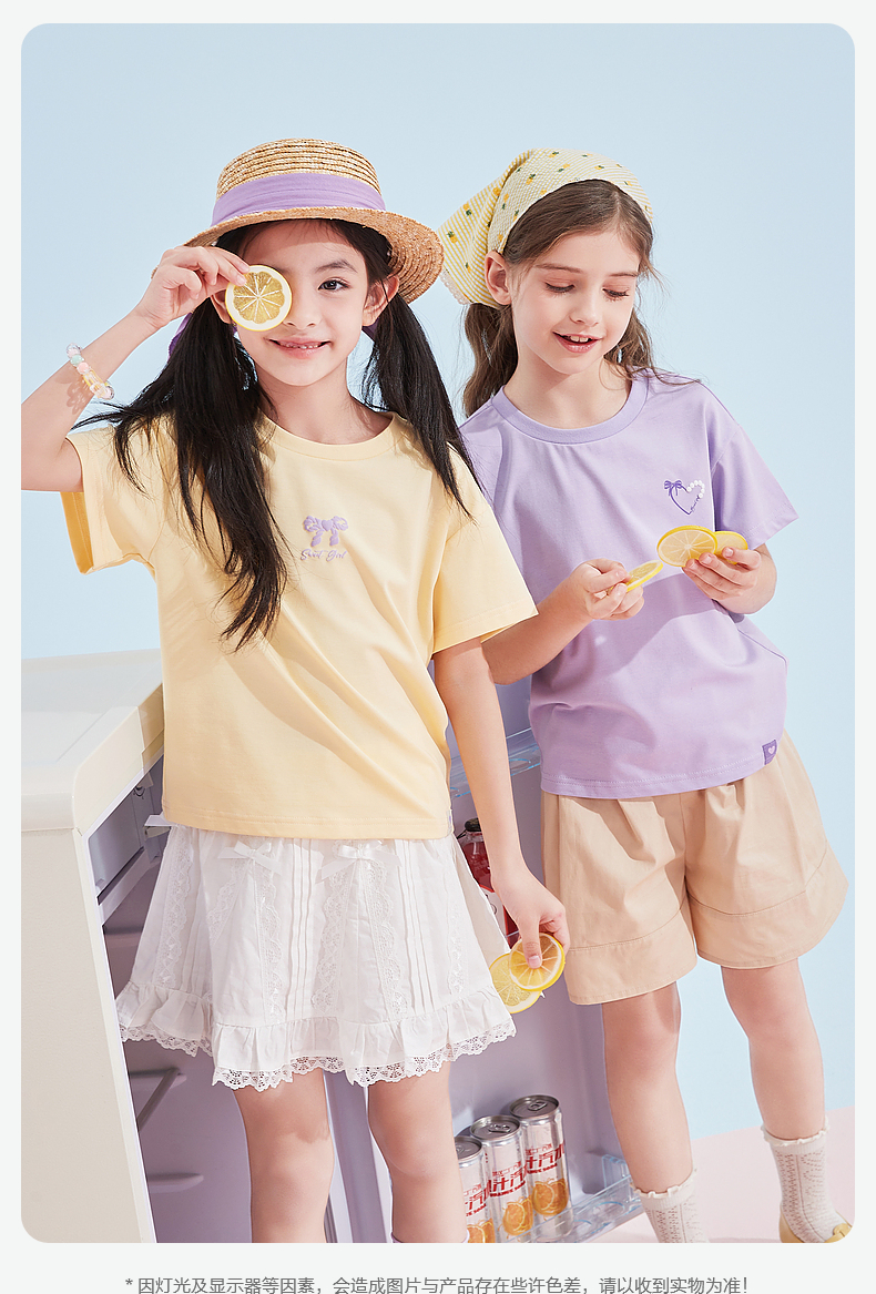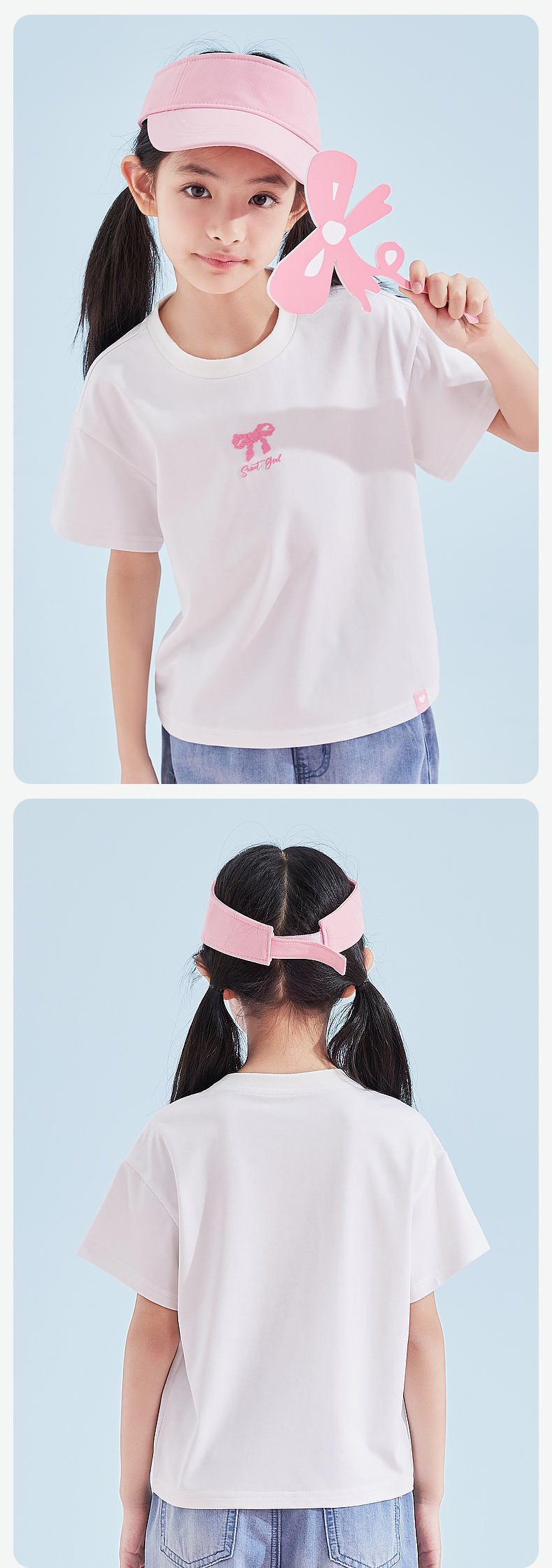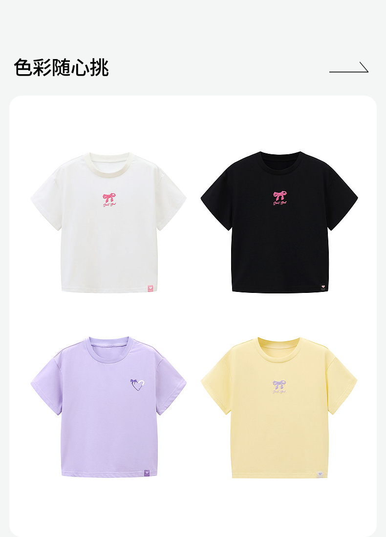 笛莎Deesha 2026年夏季新款青少年字母印花精梳棉T恤