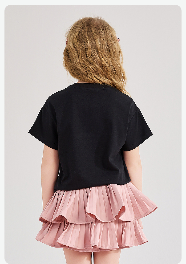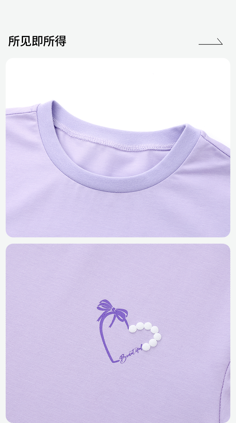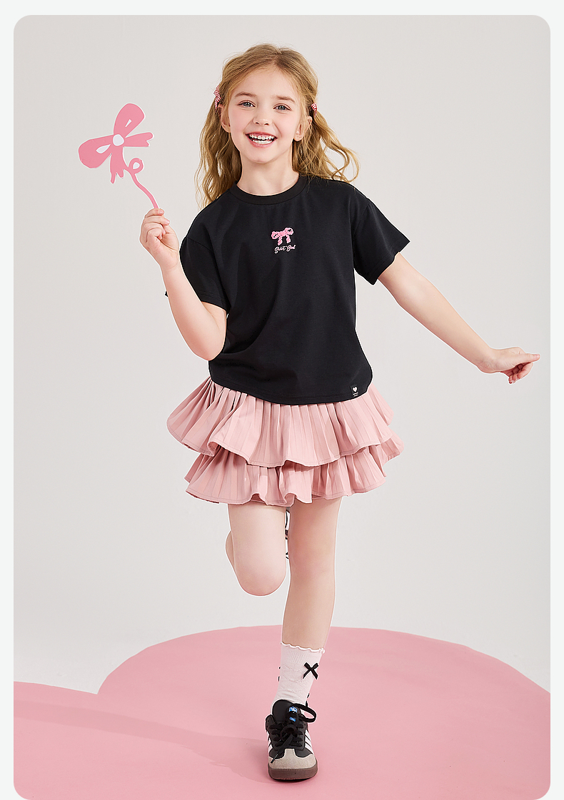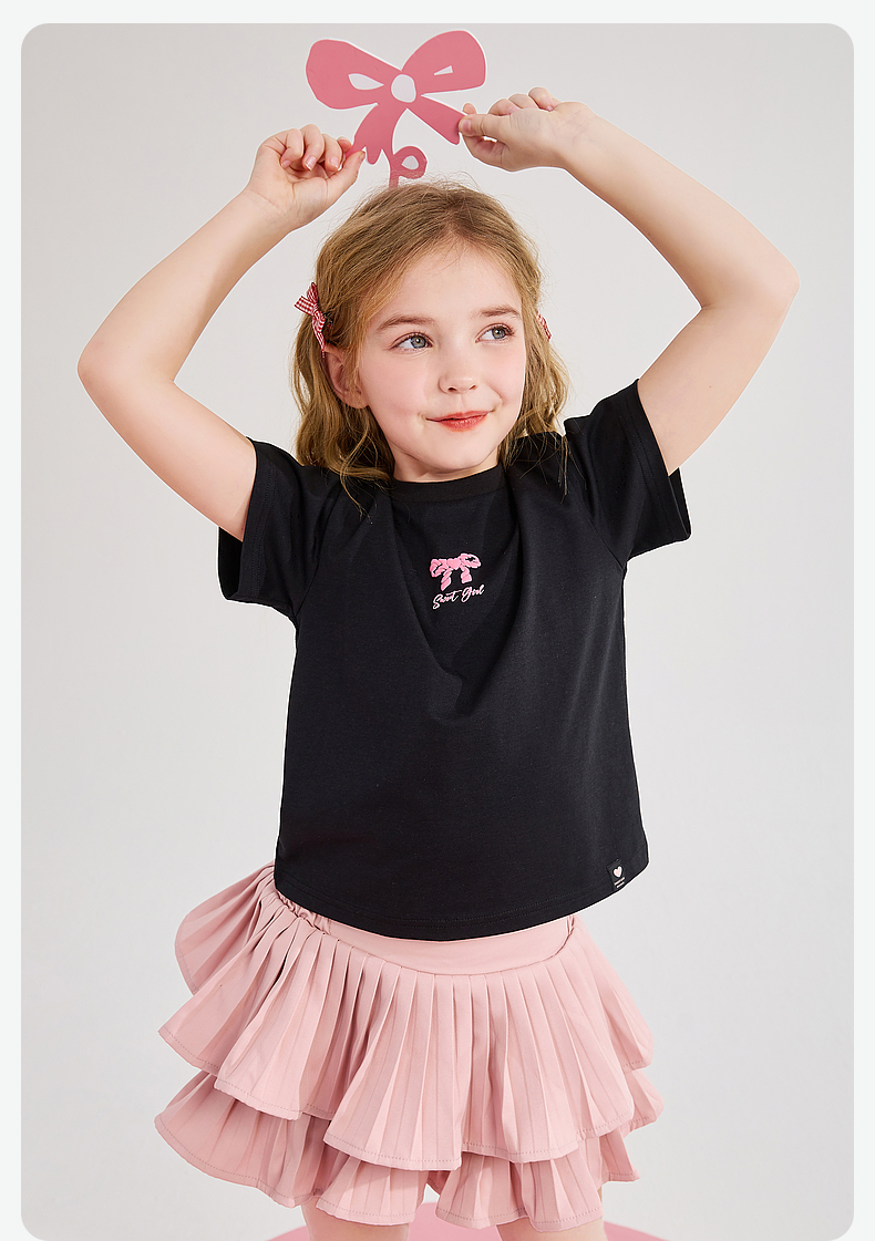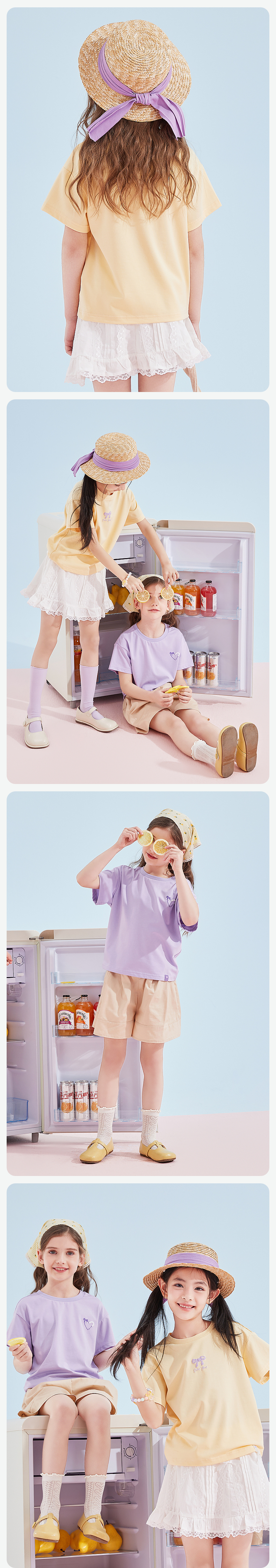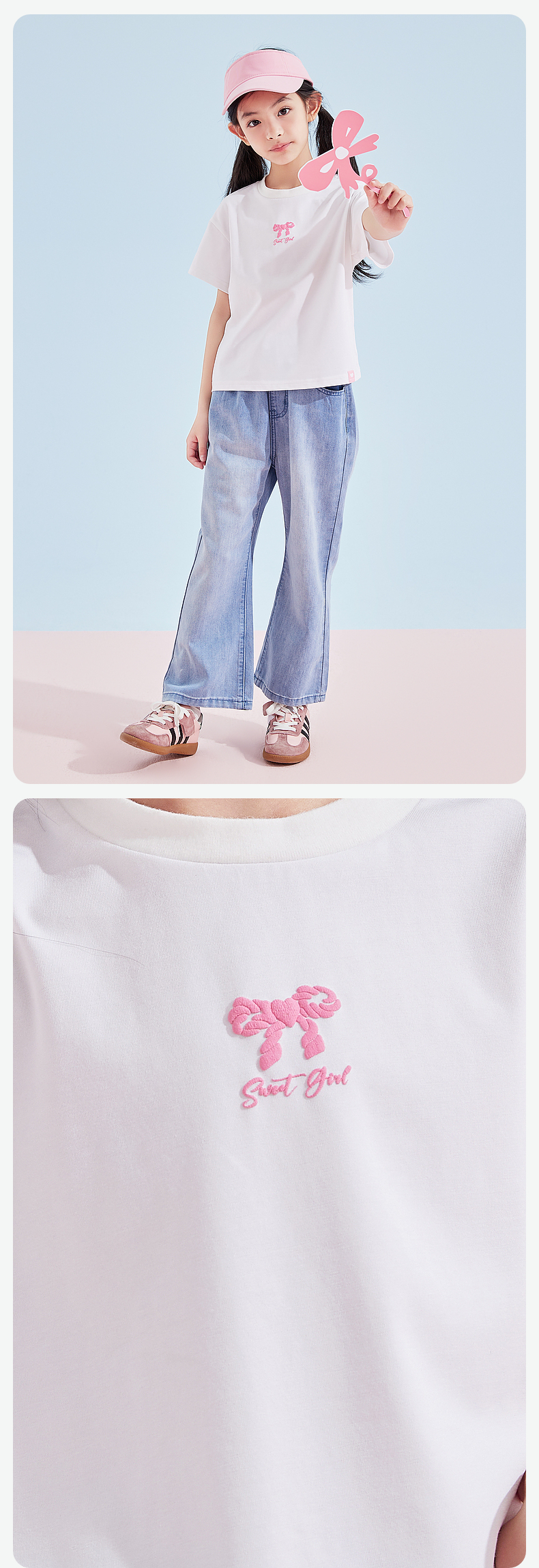 笛莎Deesha 2026年夏季新款青少年字母印花精梳棉T恤