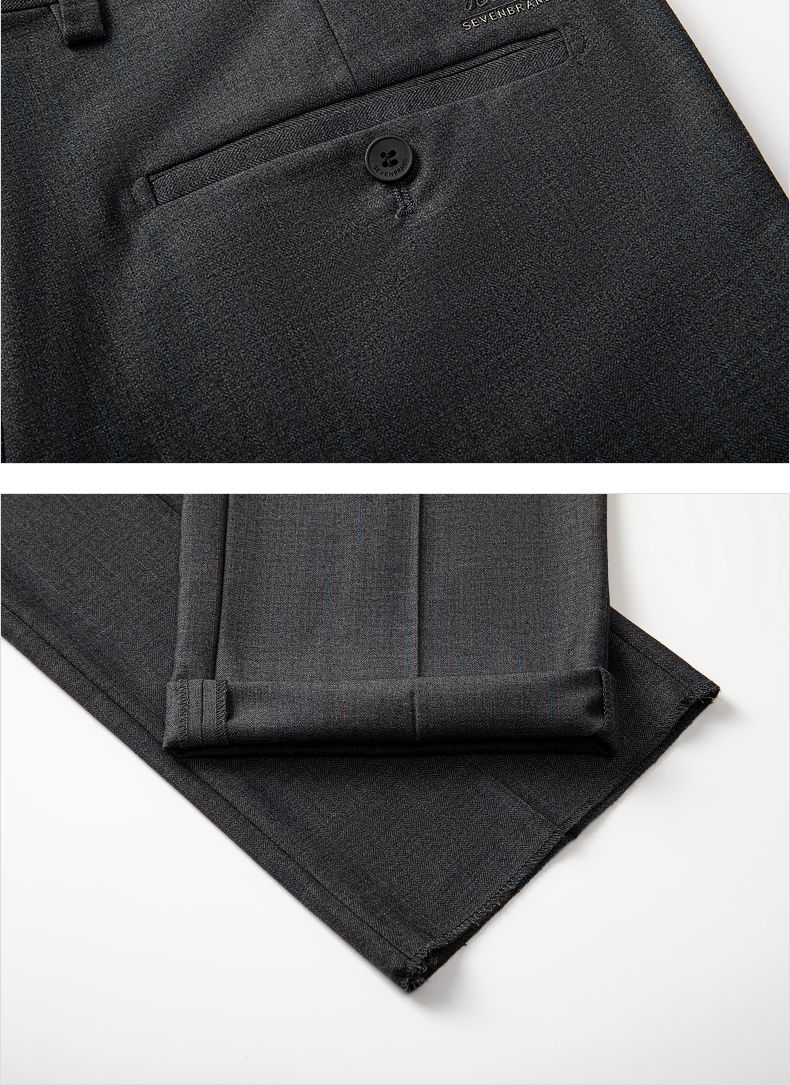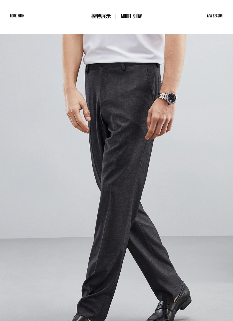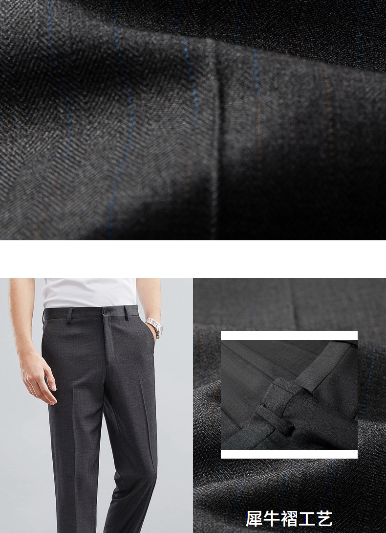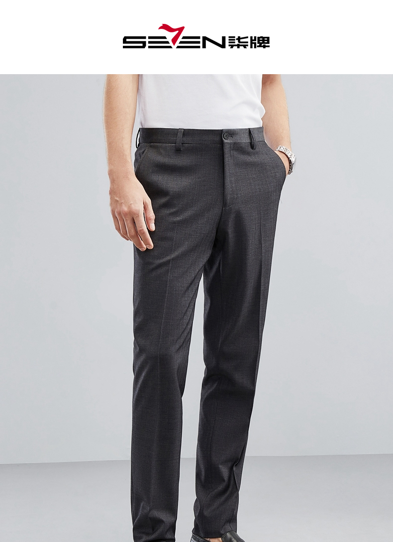 柒牌男装商务休闲西裤春夏新款犀牛褶男士人字纹西装直筒长裤 124H70320