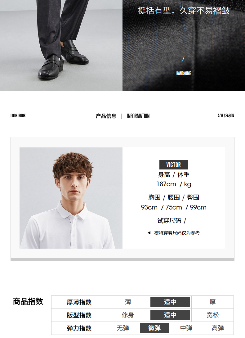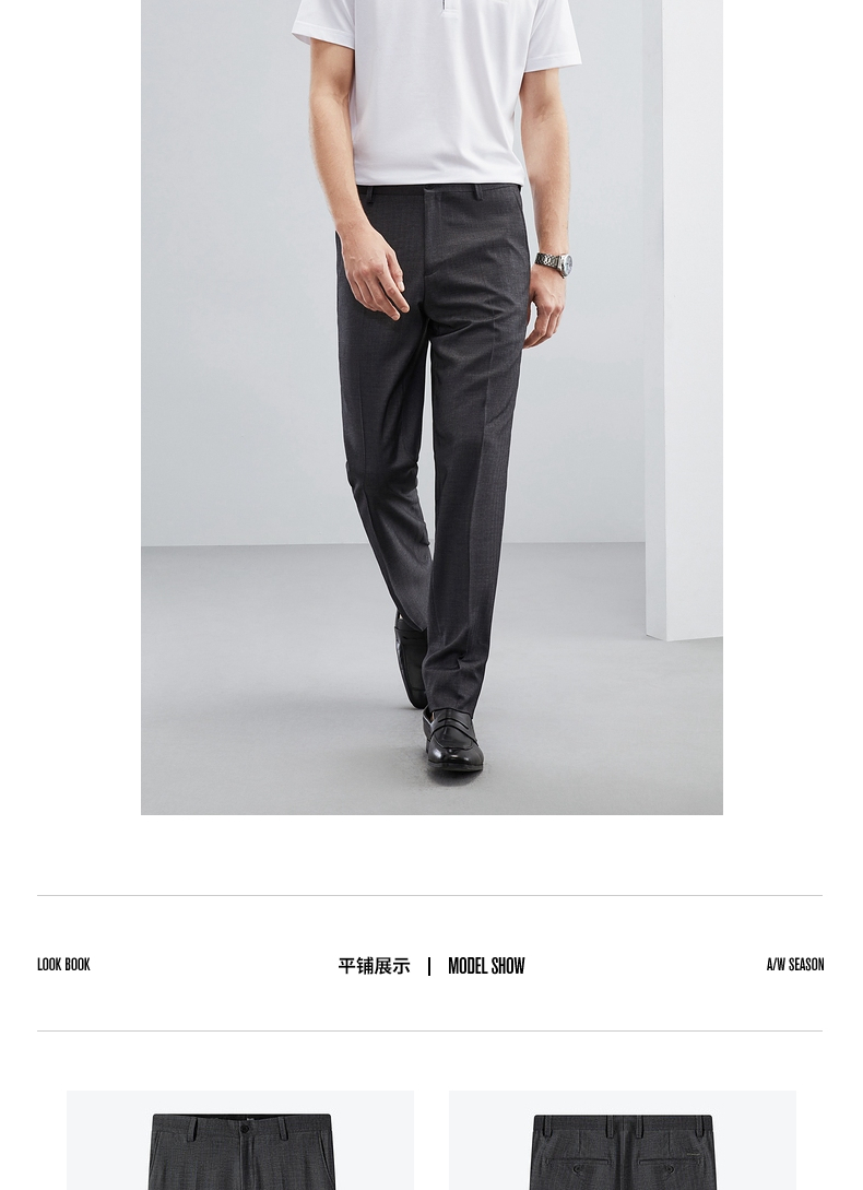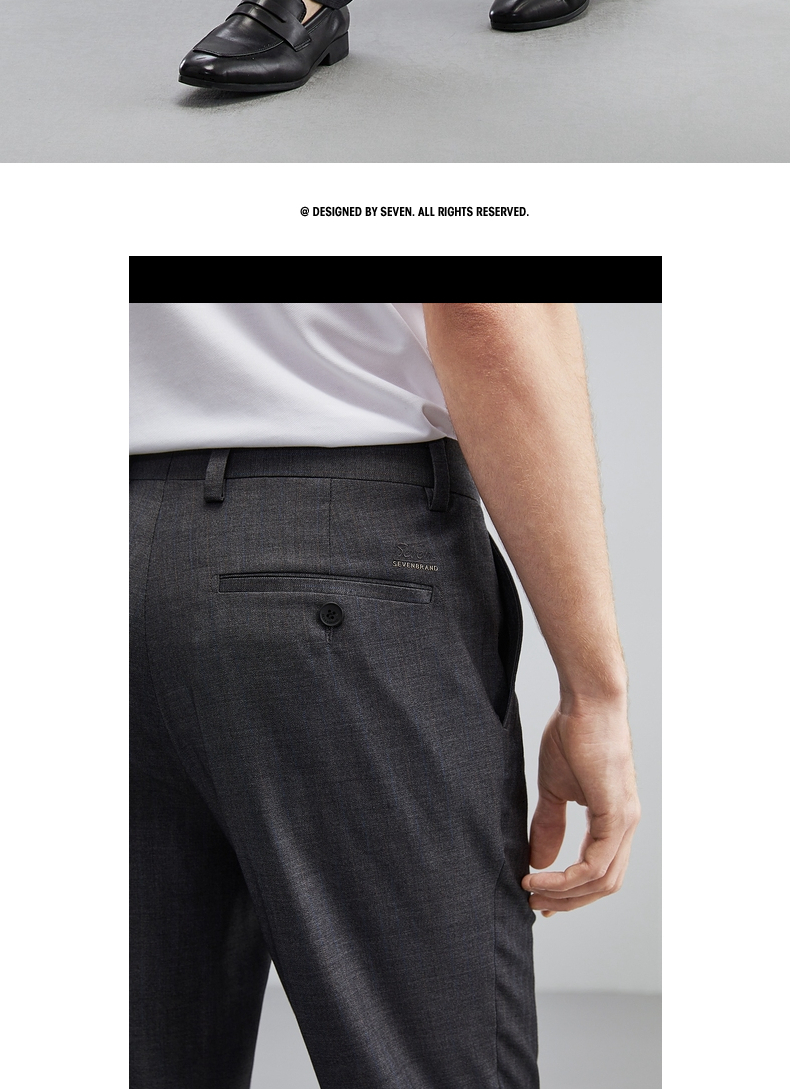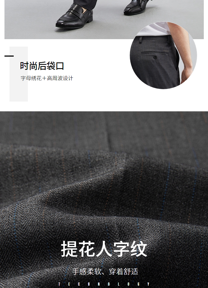 柒牌男装商务休闲西裤春夏新款犀牛褶男士人字纹西装直筒长裤 124H70320