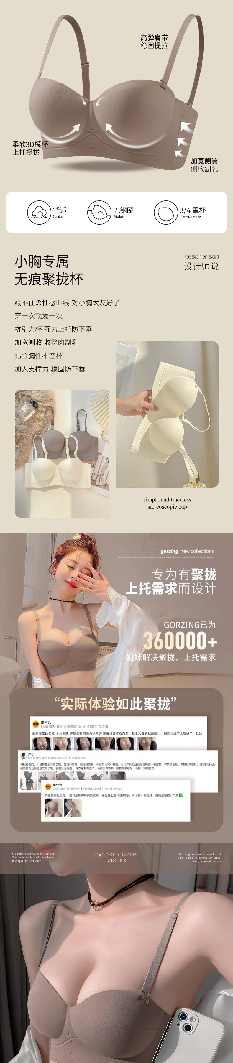 【69元买1送1!无痕升杯水蜜桃内衣】3D立体圆球杯 零感软支撑 聚拢收副乳 可拆卸肩带 一衣两穿