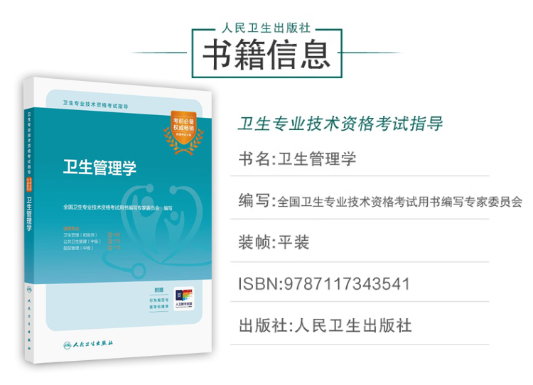 2023卫生管理学 卫生专业技术资格考试指导 人卫版官方教材卫生管理学初级师中级主治医师职称考试用书考前复习必备人民卫生出版社