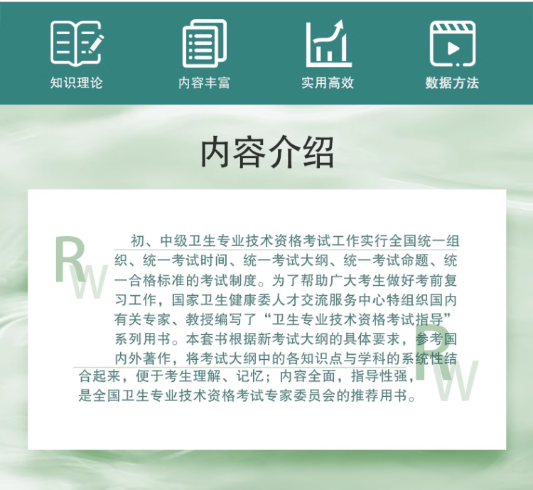 初、中级卫生专业技术资格考试工作实行全国统一组织、统一考试时间、统一考试大纲、统一考试命题、统一合格标准的考试制度。为了帮助广大考生做好考前复习工作,国家卫生健康委人才交流服务中心特组织国内有关专家、教授编写了“卫生专业技术资格考试指导”系列用书。本套书根据zuì新考试大纲的具体要求,参考国内外权威著作,将考试大纲中的各知识点与学科的系统性结合起来,便于考生理解、记忆;内容全面,指导性强,是全国卫生专业技术资格考试专家委员会的推荐用书。