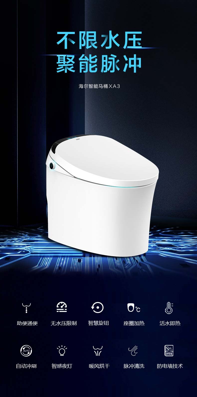 【以旧换新】海尔智能马桶一体机 无水压限制 可遥控自动除臭 即热暖风烘干一体式 XA3-C26 305坑距