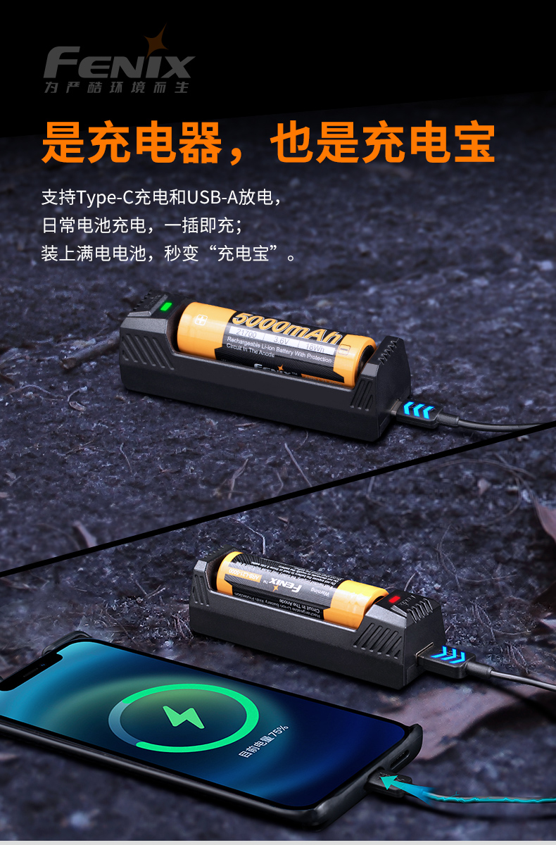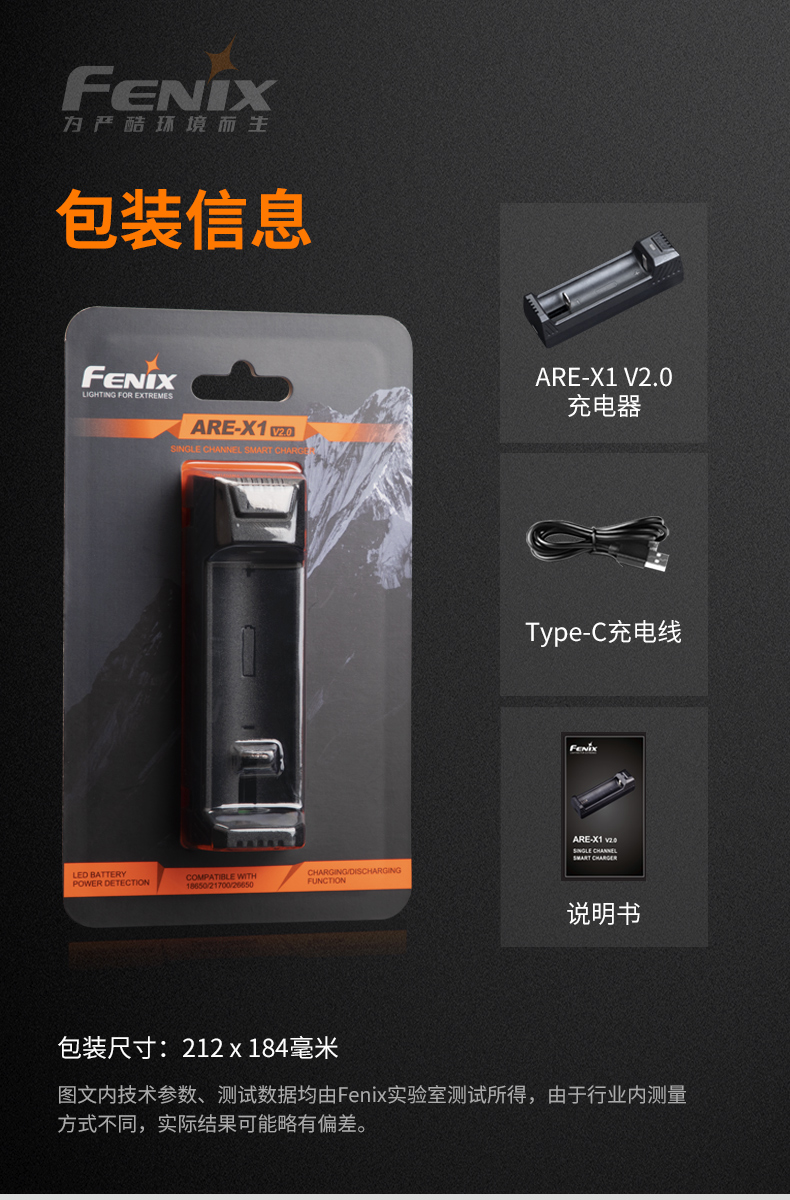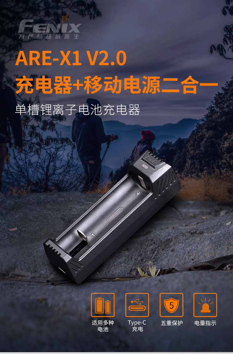 Fenix菲尼克斯 ARE-X1 V2.0单槽18650 21700 26650锂电池充电器