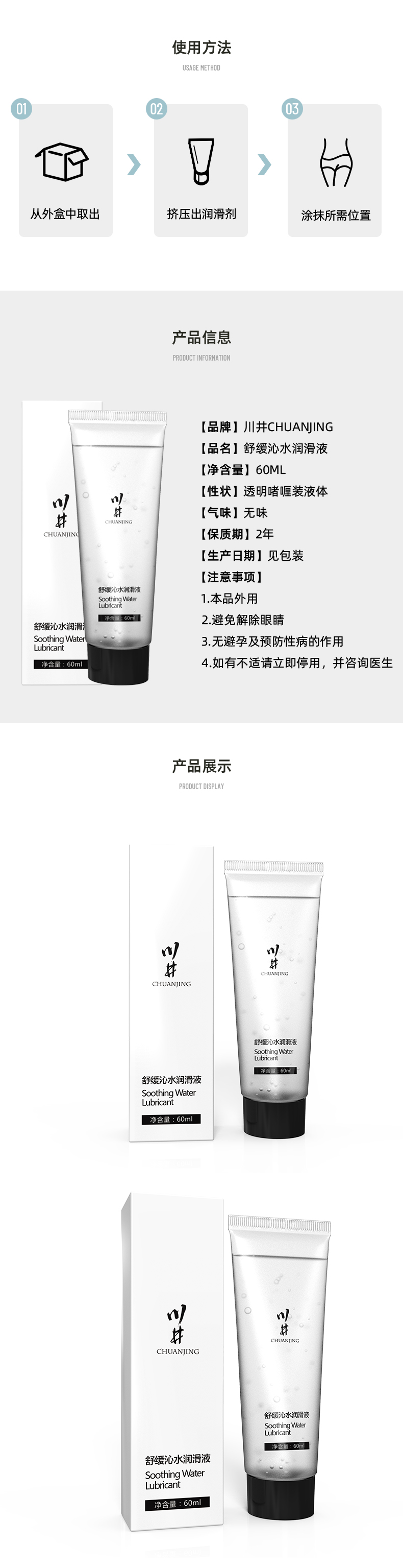 川井 舒缓沁水润滑液60ml 润滑剂液人体润滑油身体润滑剂免洗水溶性