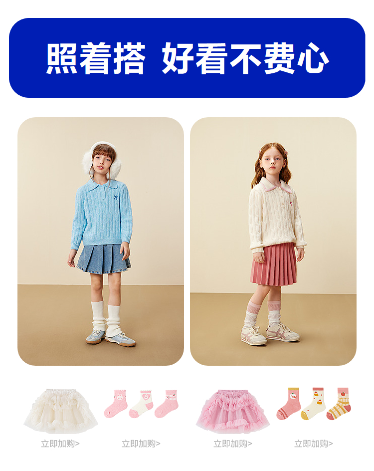 【亲子】迷你巴拉女童儿童母女毛衣2025冬甜美学院风polo翻领毛衫