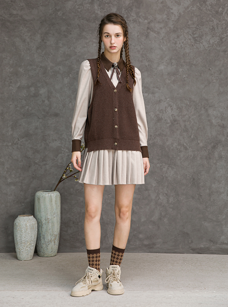 Famecoco范可儿学院风套装两件套冬装套装女F218EA006