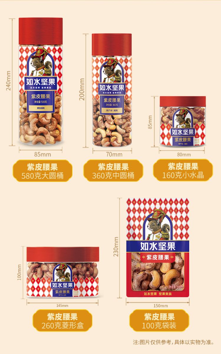 如水紫皮腰果580g