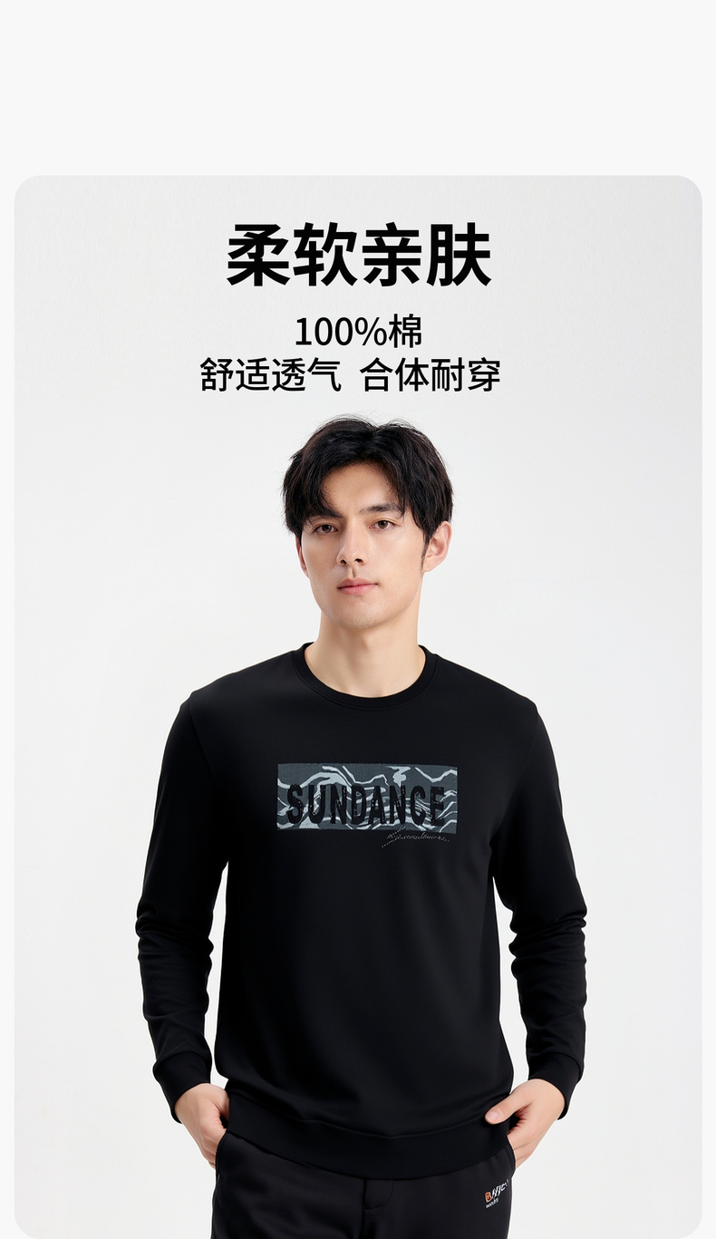 【100%棉】圣得西男50S针织T恤2025秋季新款亲肤透气固色耐穿卫衣