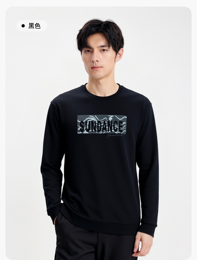 【含棉&加绒加厚】圣得西男士圆领卫衣2025秋季新款胸前logo印花T恤