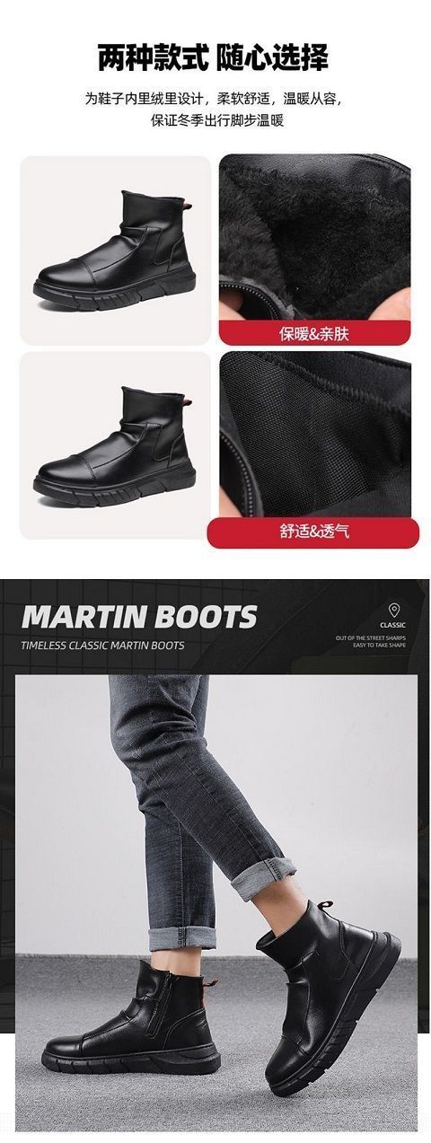 马丁靴男春秋冬季加绒男士休闲皮鞋男高帮鞋子男韩版潮流时尚短靴