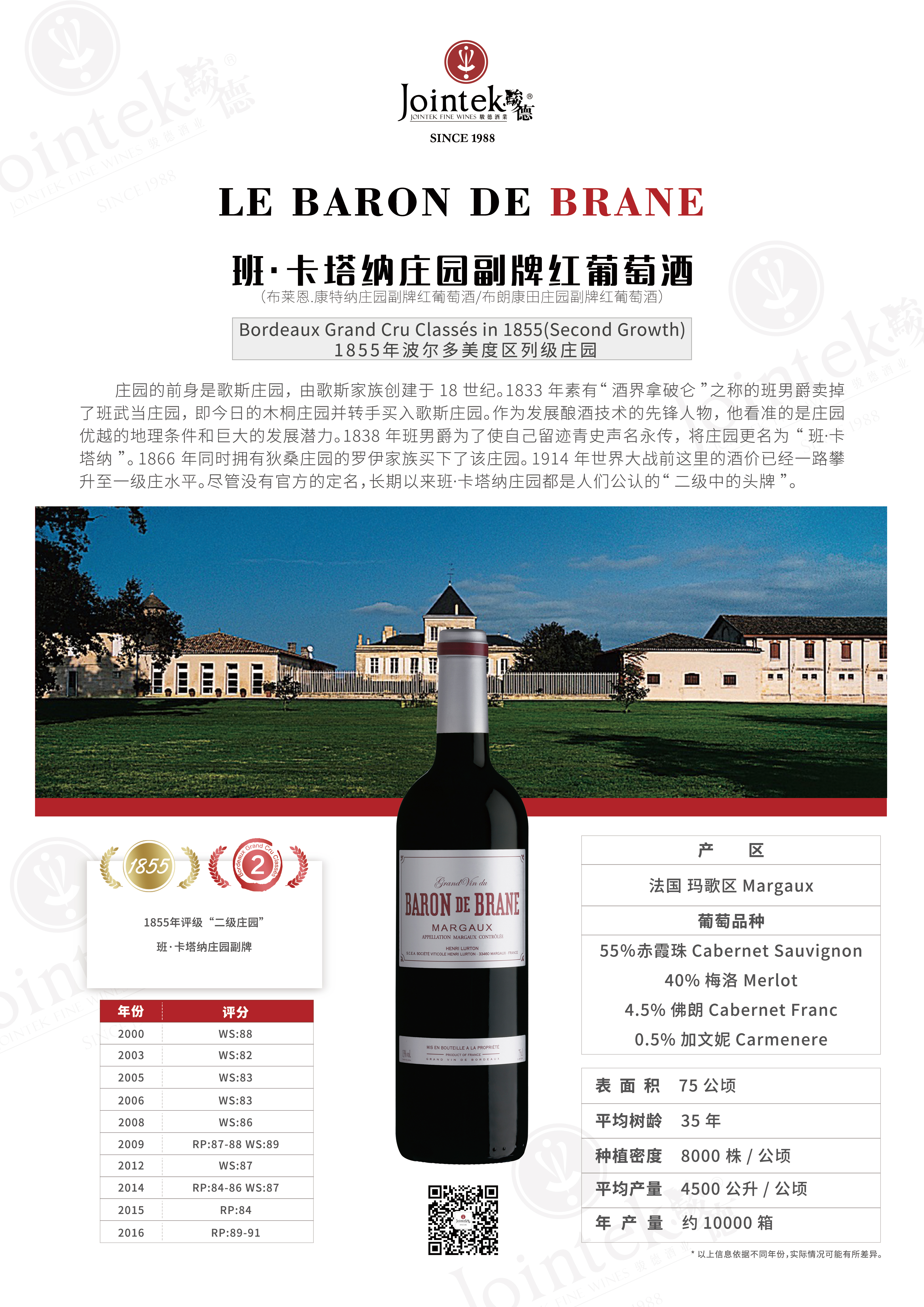 2013 班·卡塔纳庄园副牌(布朗康田)红葡萄酒 Baron de Brane 750ml