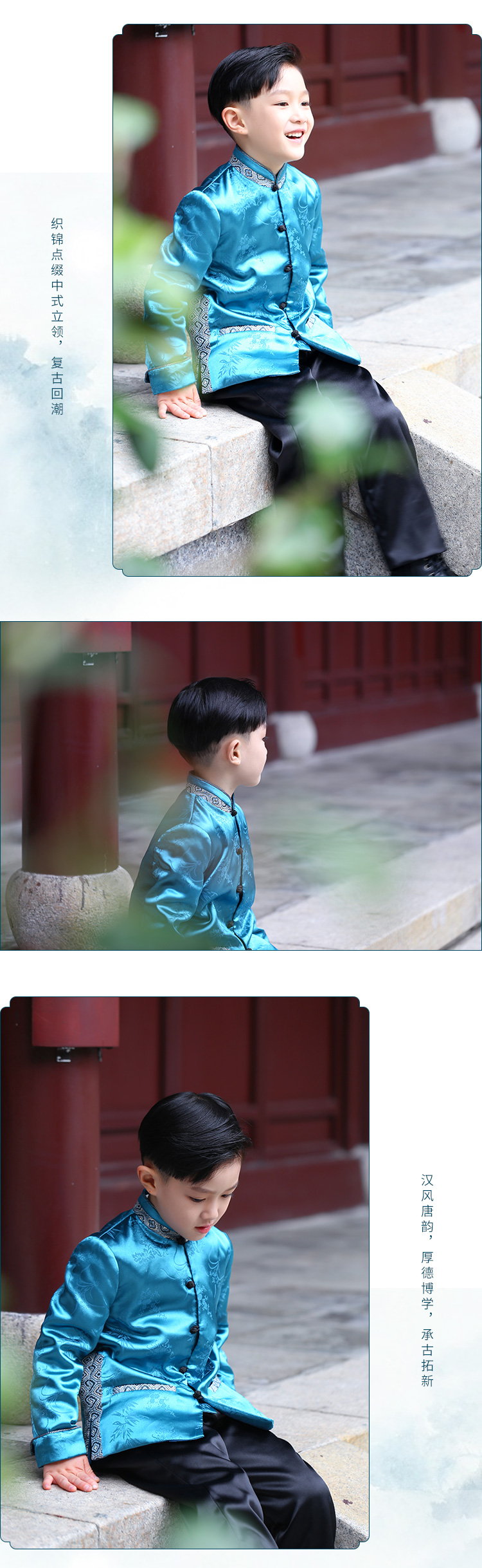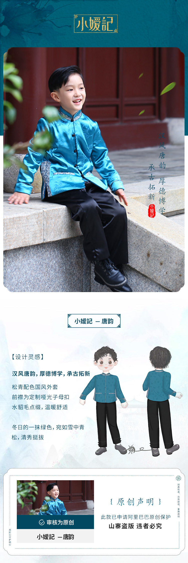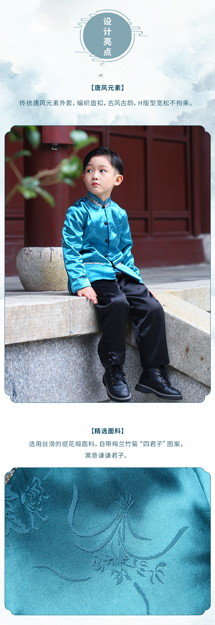 非质量问题不退换哦~小嫒记男童秋冬新款中国风外套裤子-唐韵 玄墨