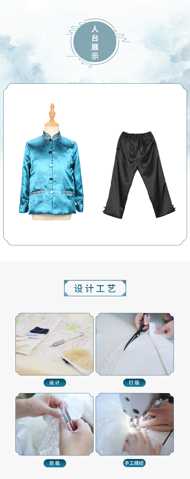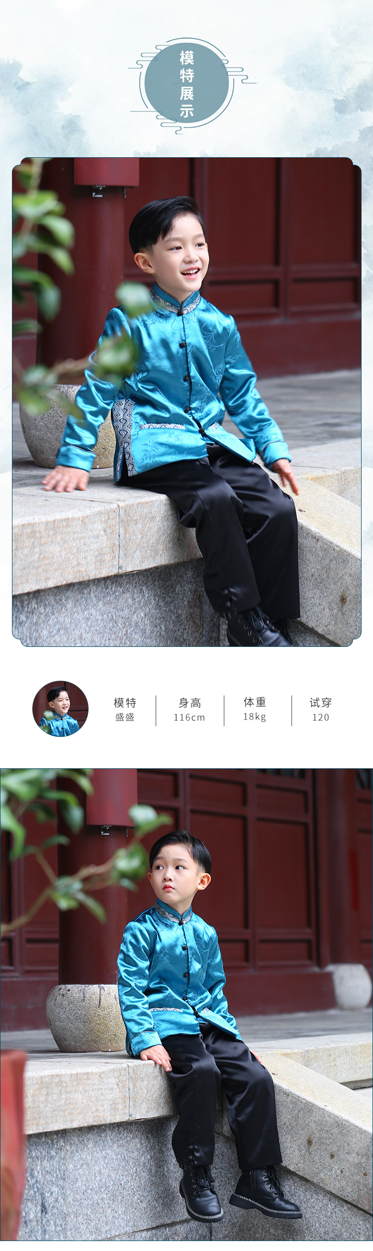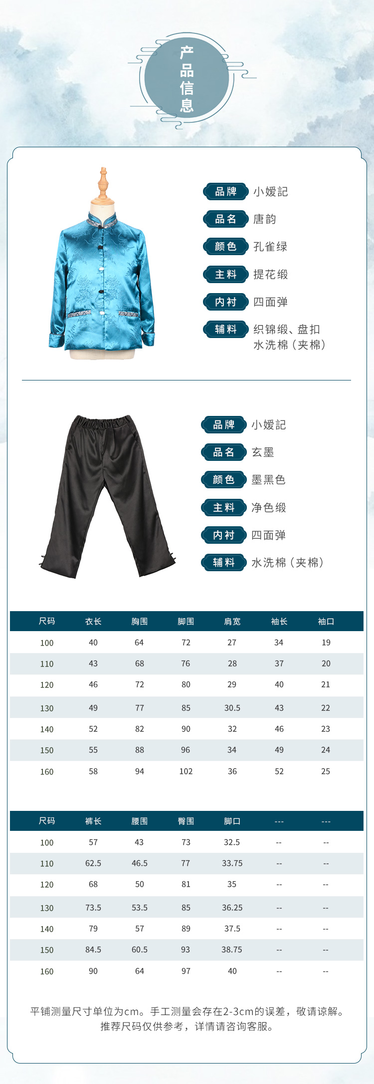 非质量问题不退换哦~小嫒记男童秋冬新款中国风外套裤子-唐韵 玄墨