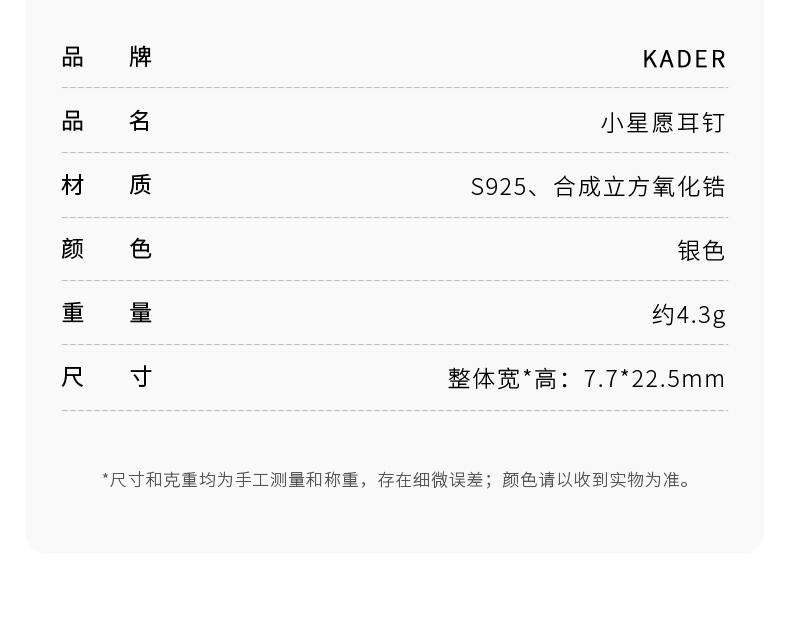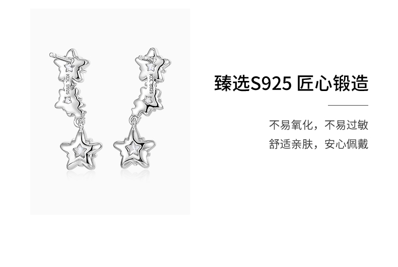 KADER卡蒂罗 小星愿耳钉 925银璀璨流星绚丽闪耀设计耳饰 灵动百搭梦幻吸睛约会配饰 情人礼盒520