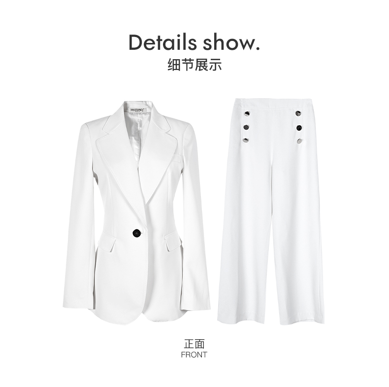 米思阳春装新款时尚职业套装修身西装外套阔腿裤两件套女0470