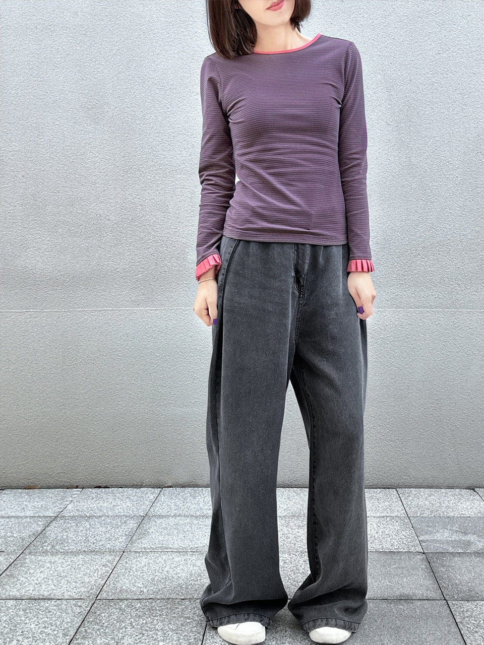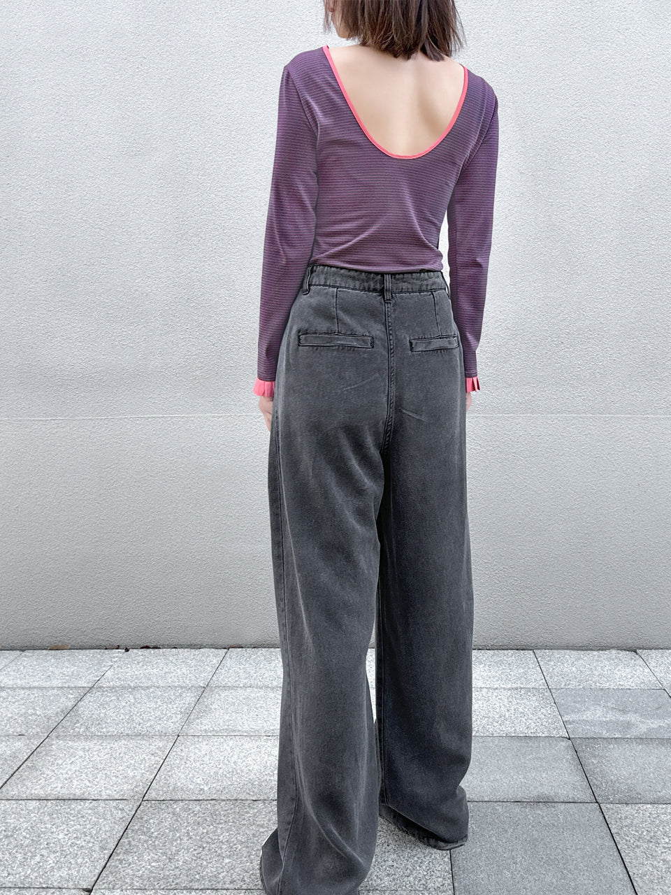 TYNVIE 插袋直筒阔腿裤-白色
