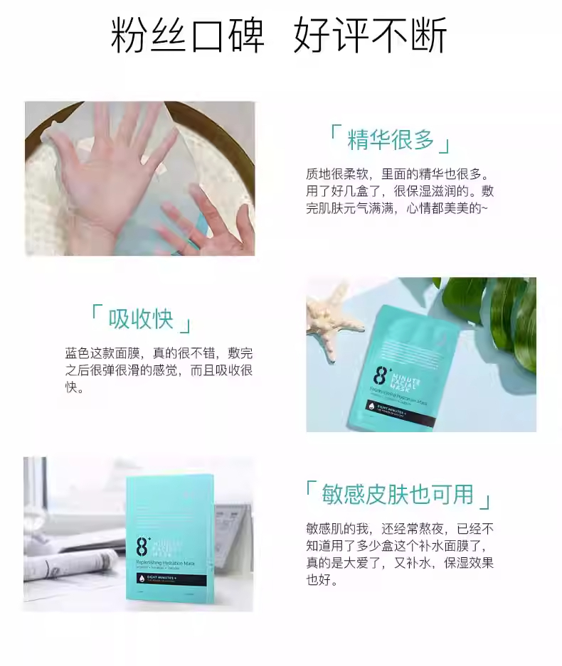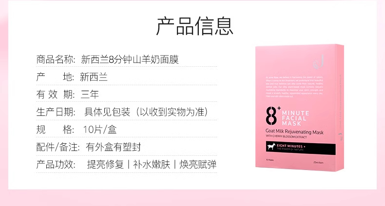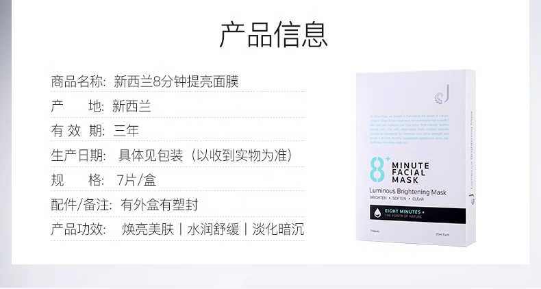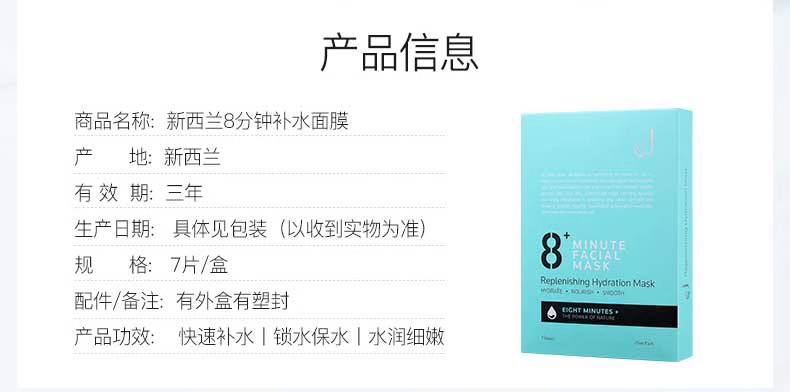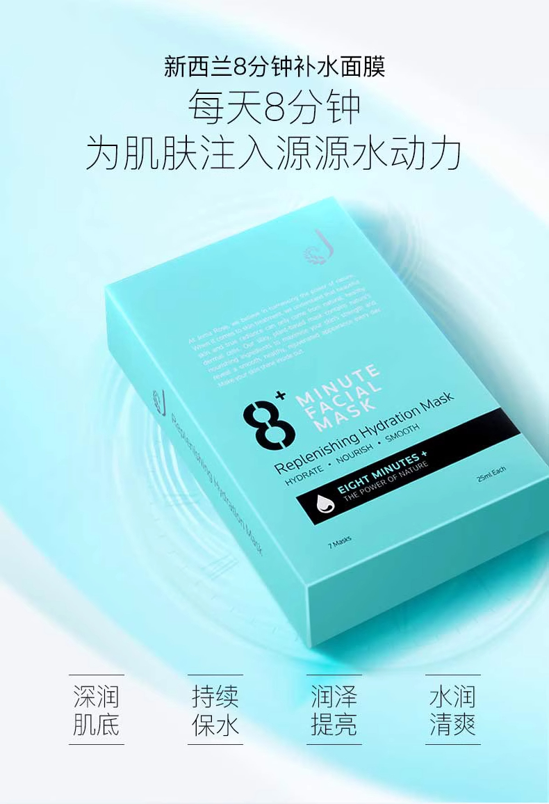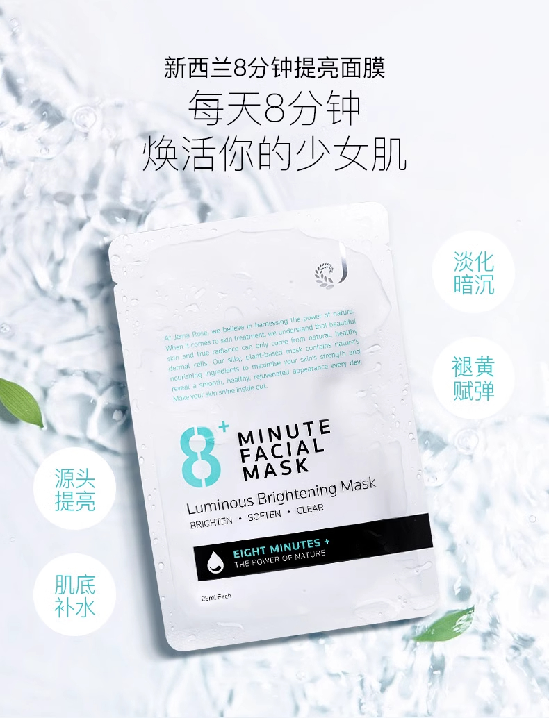 【中欧班列精选】新西兰8Minute面膜 原装进口 补水美白面膜 7片装/盒 SZQR