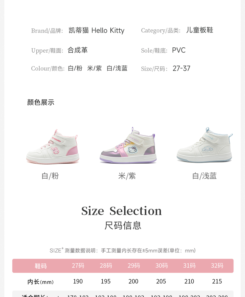hellokitty童鞋冬季凯蒂猫儿童板鞋27-37码 K5546850
