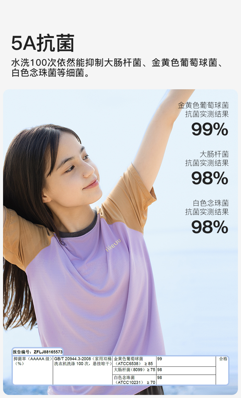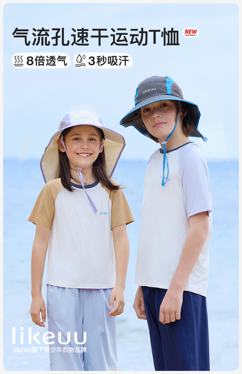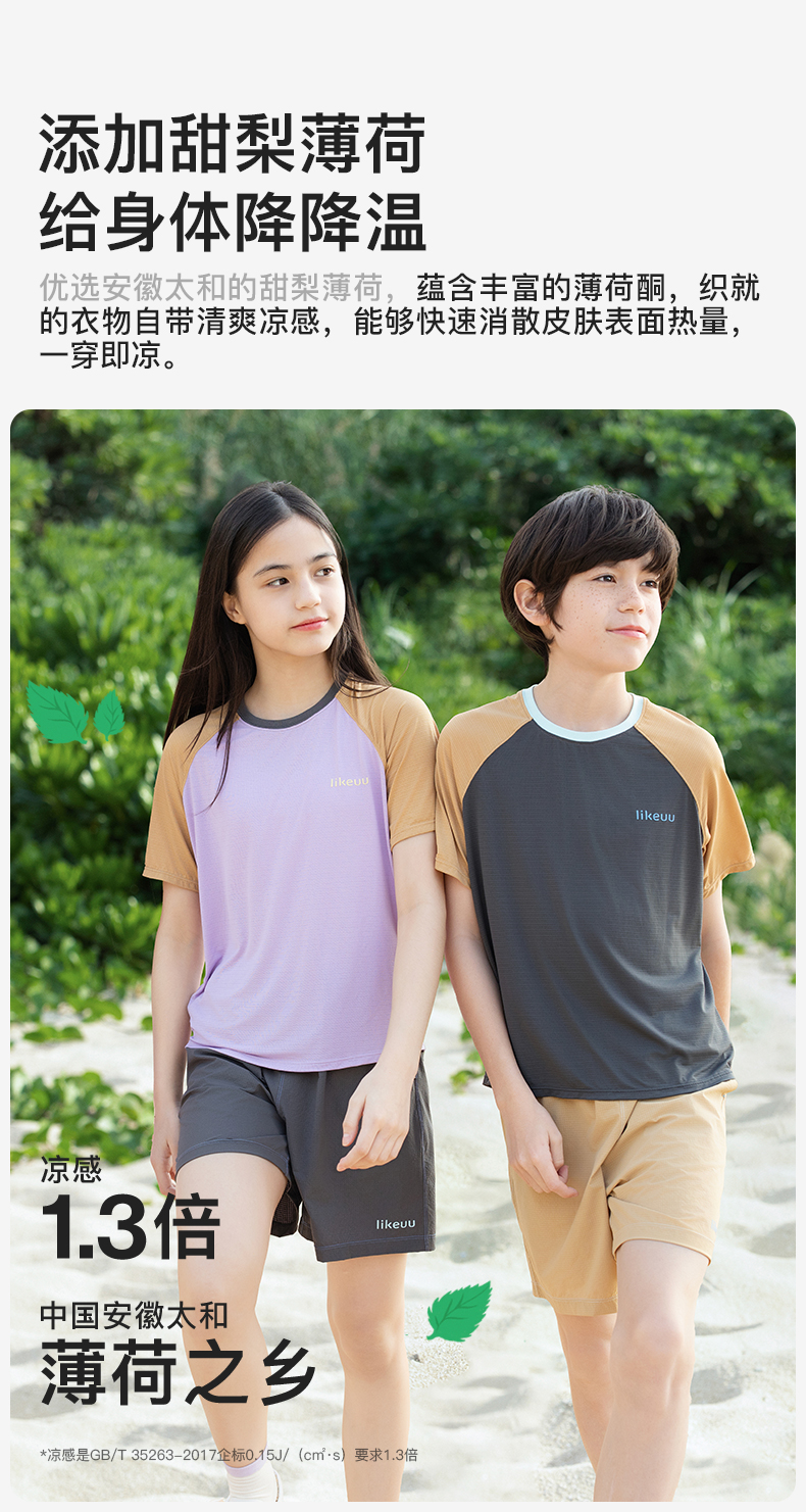 【明星同款】ubras旗下likeuu男女童凉感吸湿速干短袖透气半袖运动圆领T恤夏季