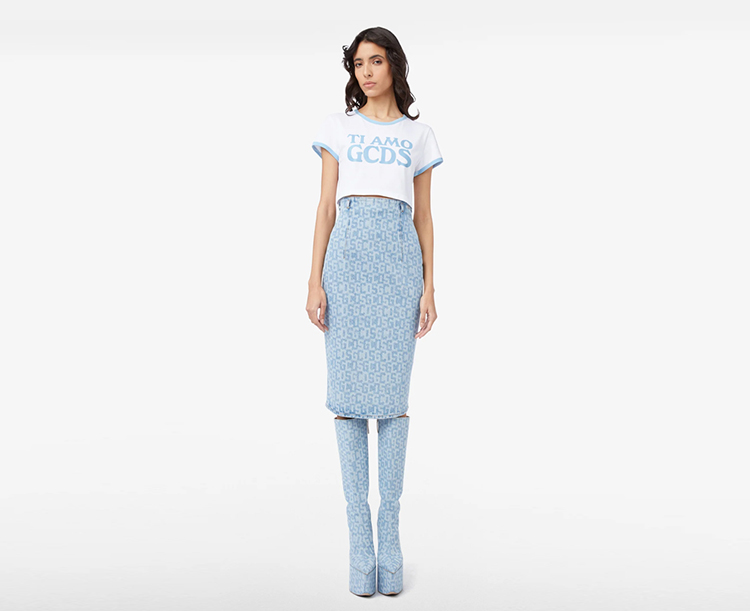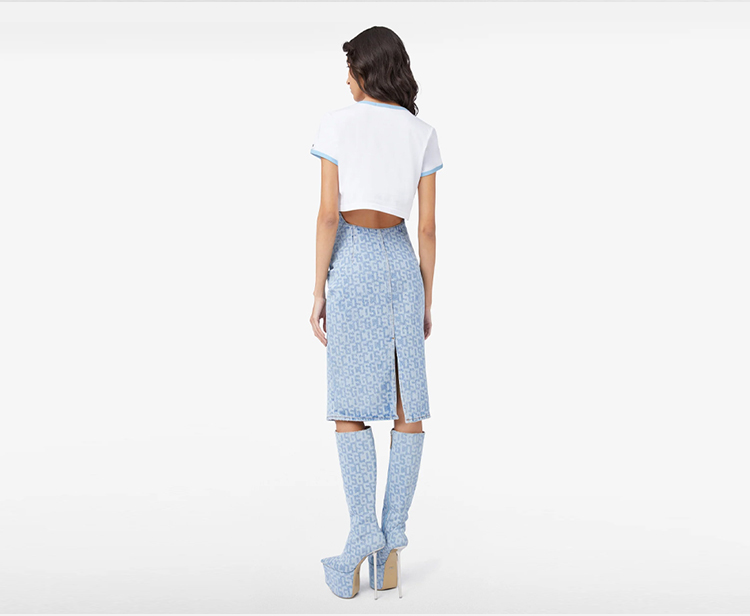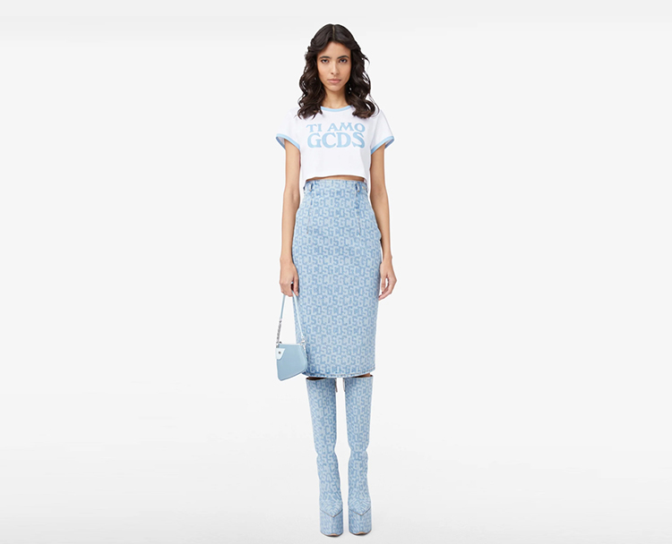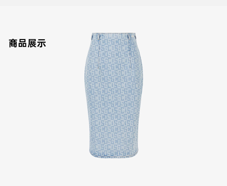 GCDS 女士字母牛仔铅笔裙 浅蓝色 A1OW3203DA275