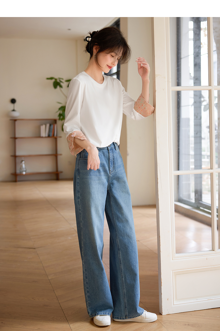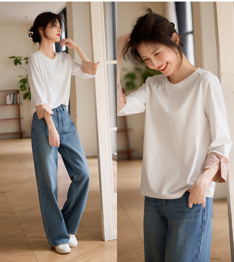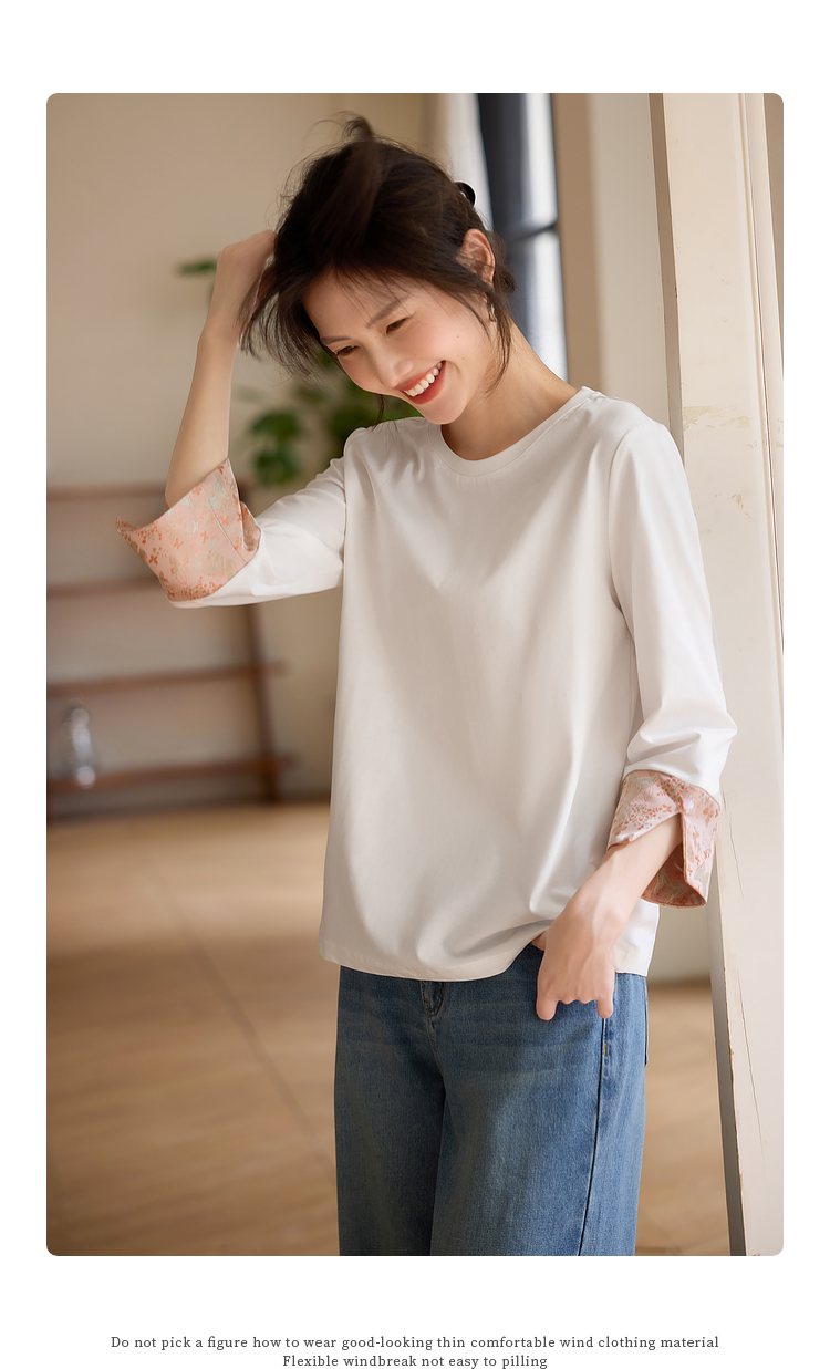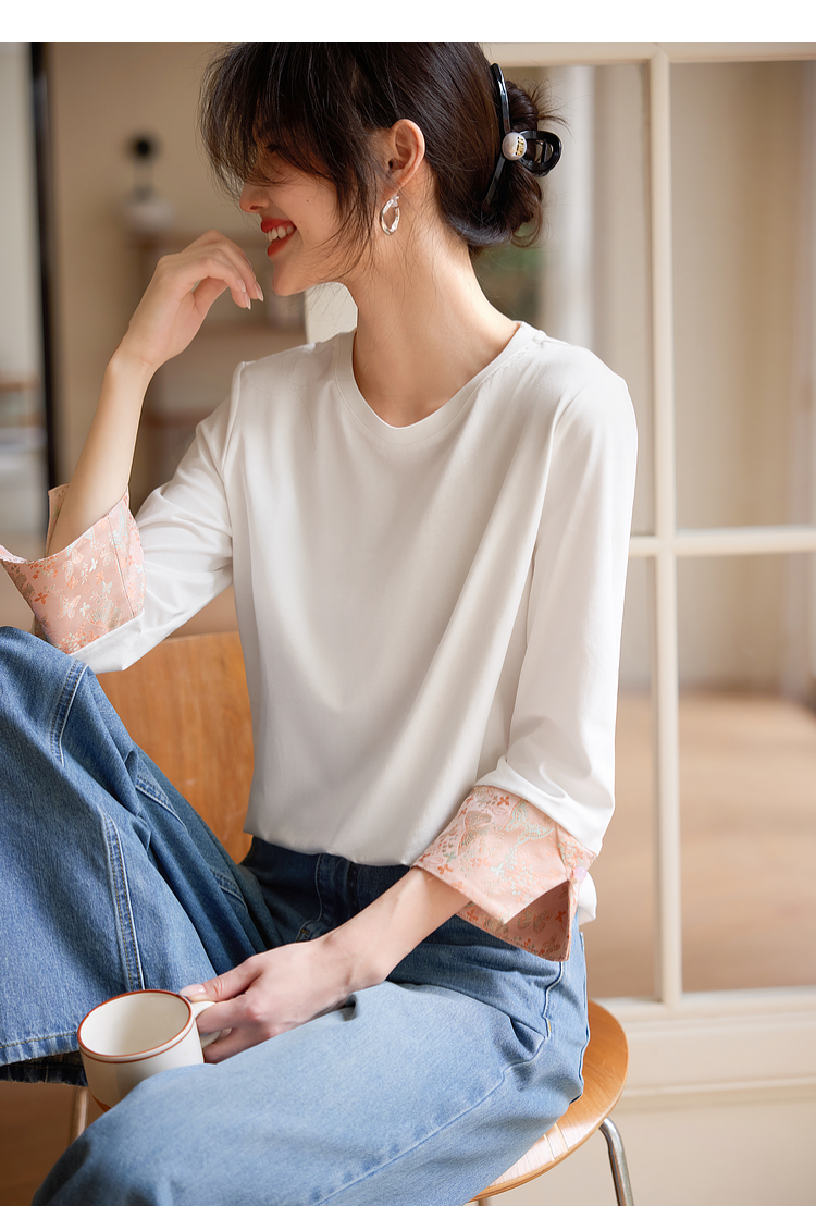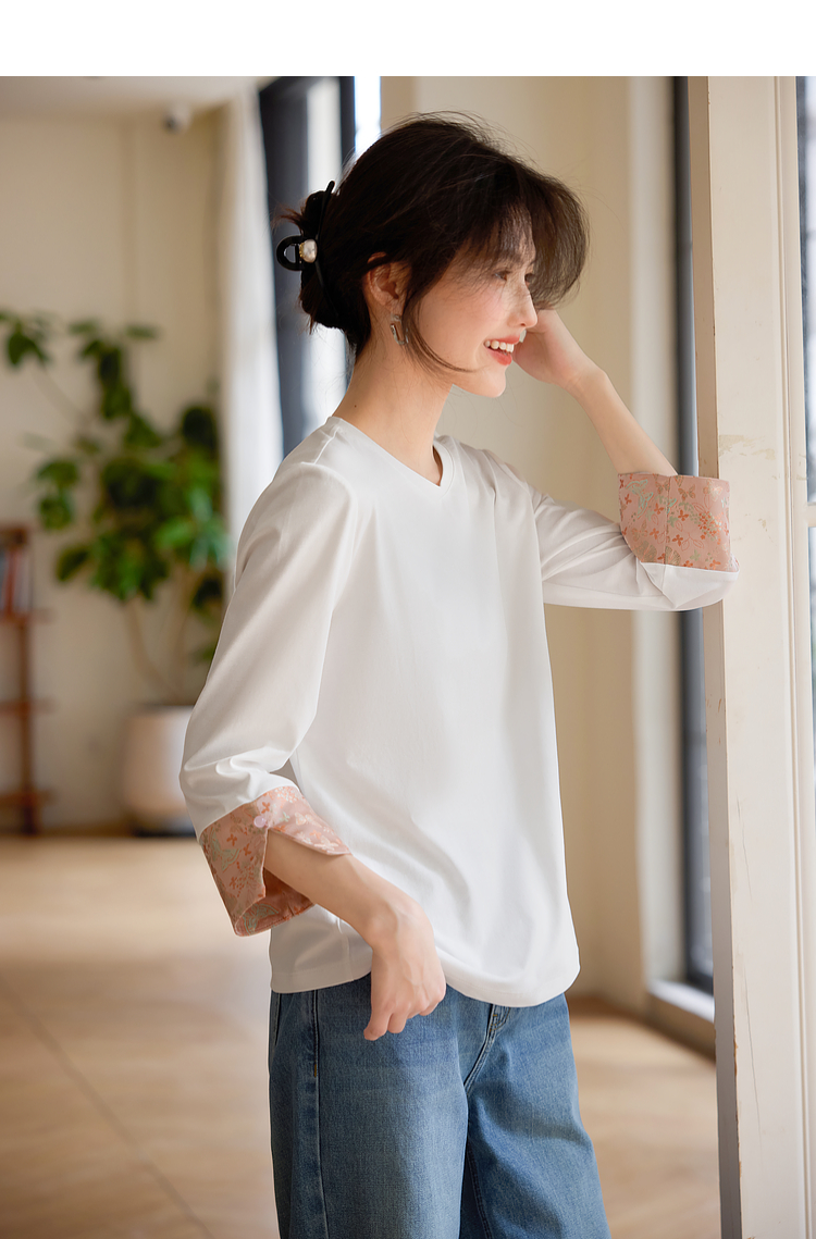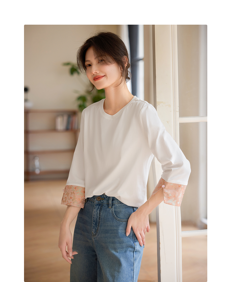 【春夏新品】熙世界新中式国风锦缎织纹七分袖T恤女2025年春季设计感休闲上衣