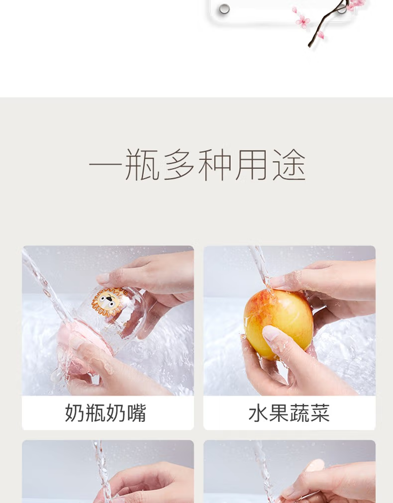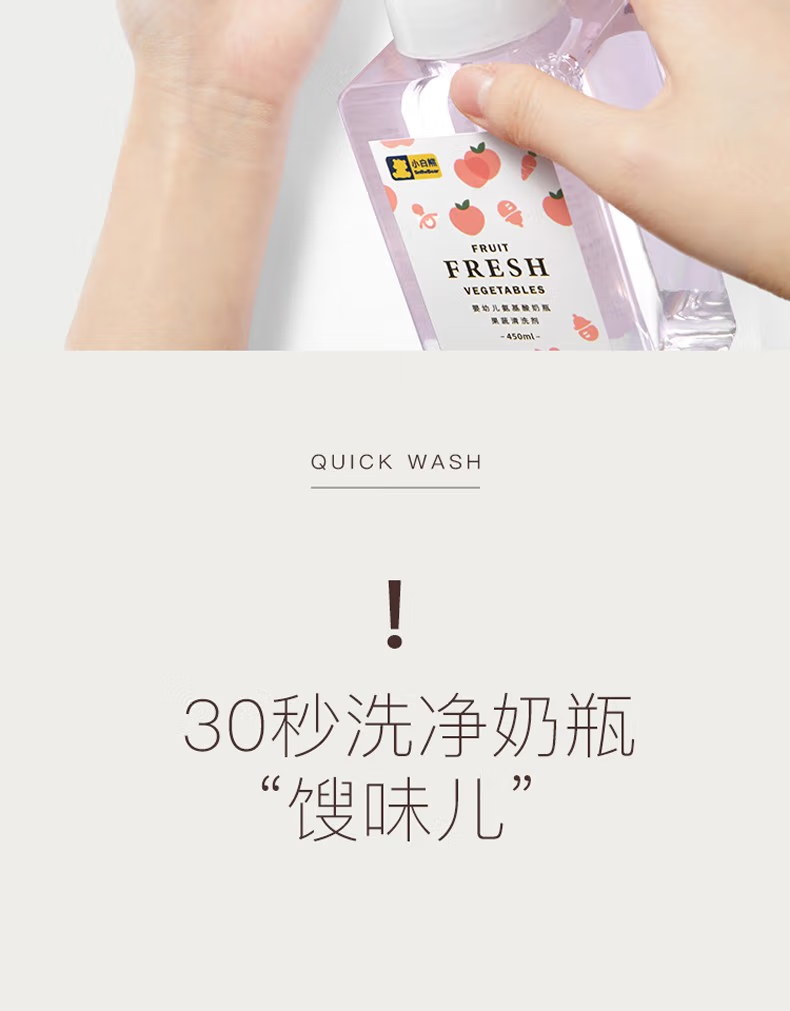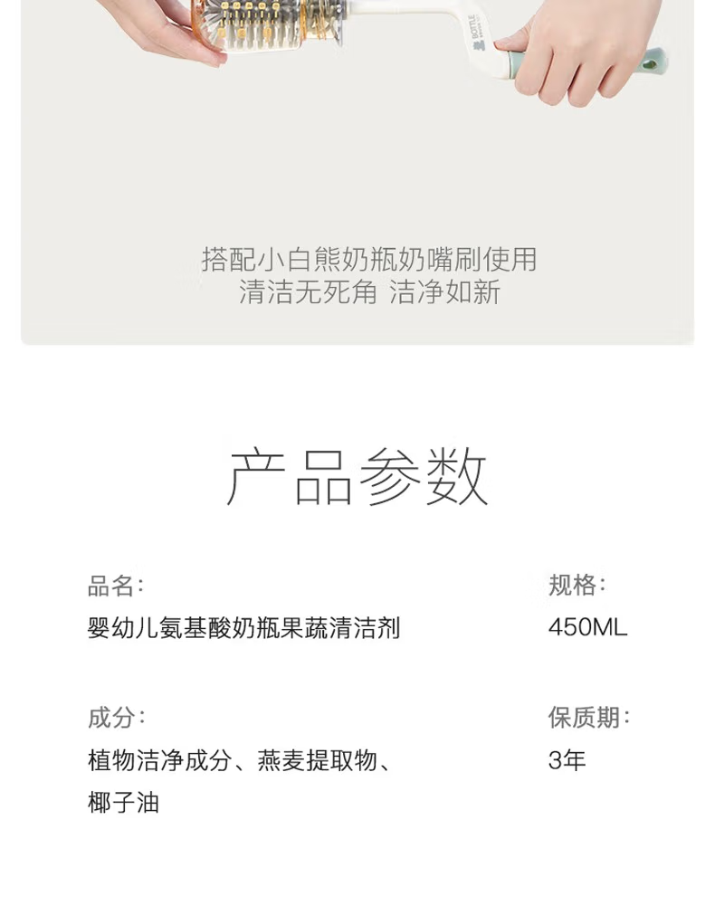 【满100赠母婴清洁剂】小白熊奶瓶清洗剂宝宝专用洗奶瓶果蔬清洁剂婴儿玩具泡沫清洗液450ml 奶瓶果蔬清洁剂