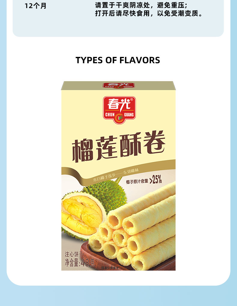 48g榴莲酥卷 夹心饼干蛋卷
