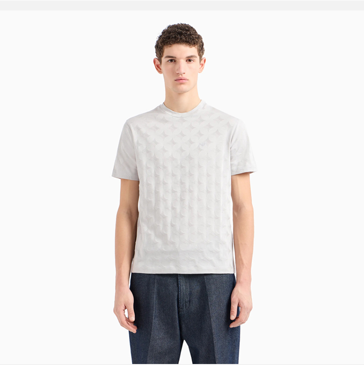 EMPORIO ARMANI 阿玛尼 通体提花图案图案平纹针织圆领短袖 T 恤 灰色 3D1T7S 1JGMZ 0600