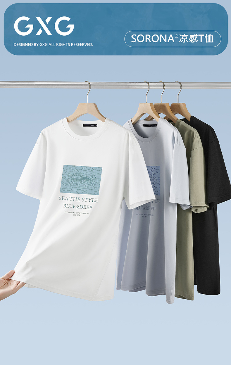 GXG男装【海洋鱼】25夏季时尚简约百搭休闲凉感透气男式短袖T恤K&C