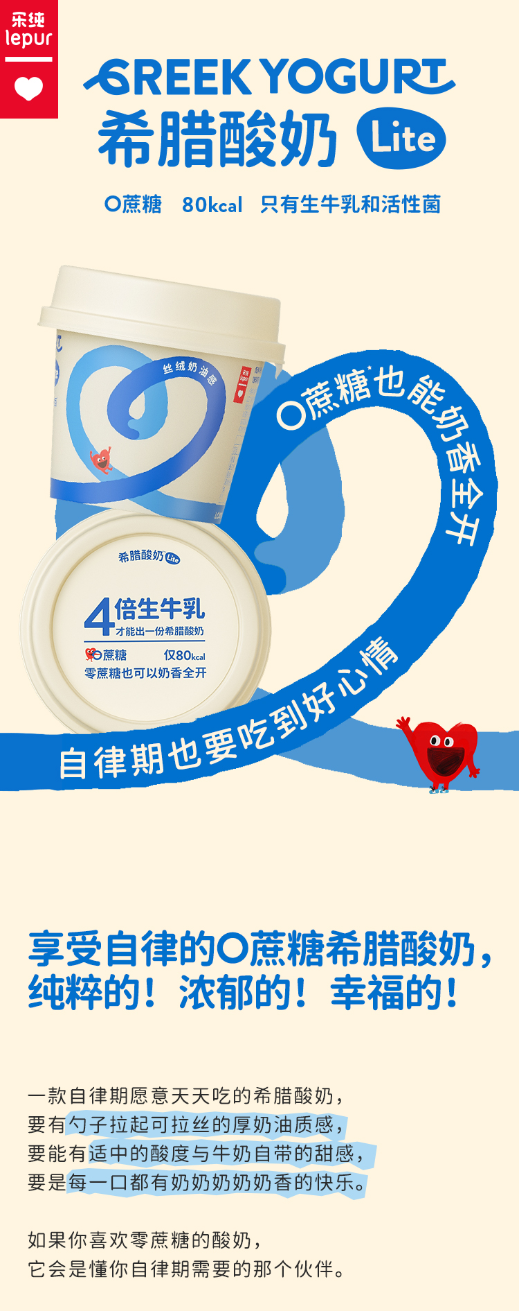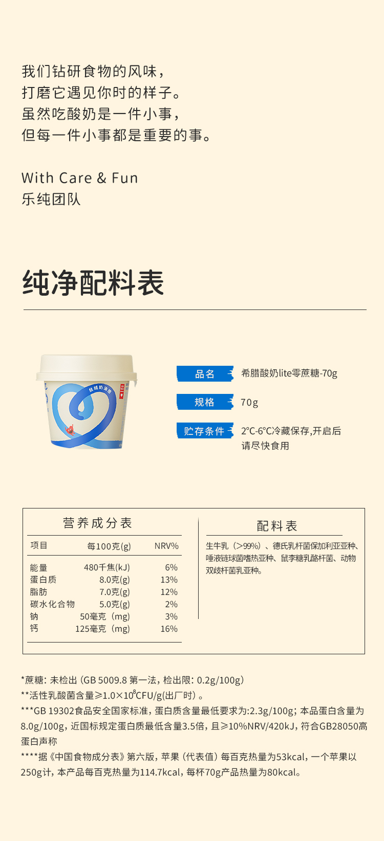 【乐纯】轻盈系列Lite希腊零蔗糖原味希腊式发酵乳70g*15盒