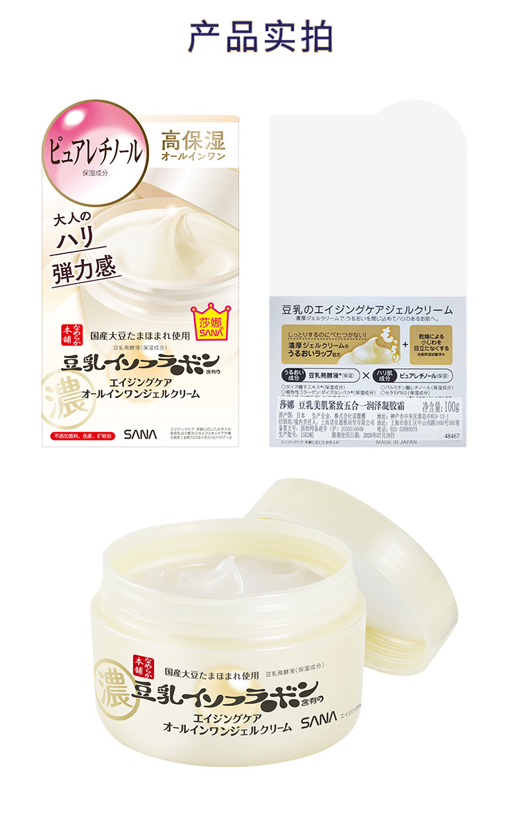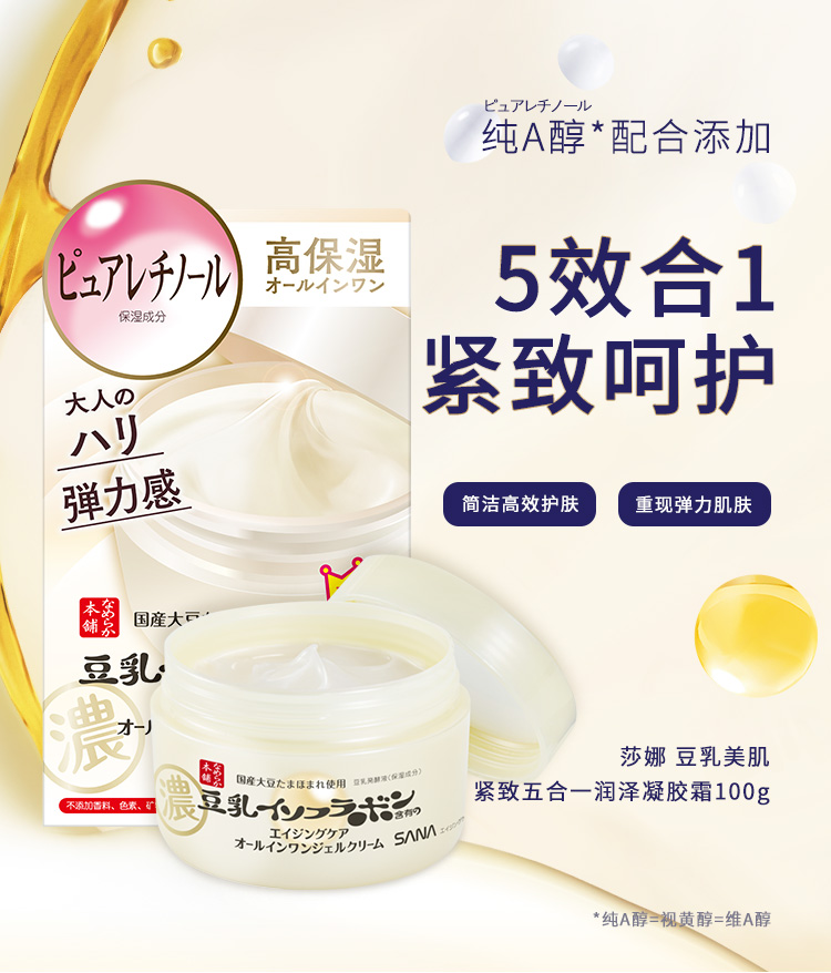 莎娜(SANA)豆乳美肌紧致凝胶面霜女维a视黄醇五合一日霜5in1淡化100g【单品】/【套装】