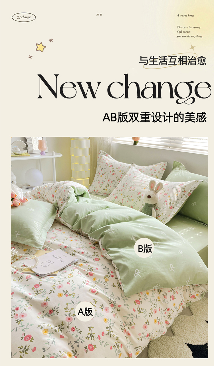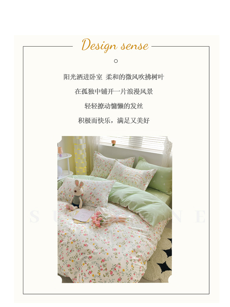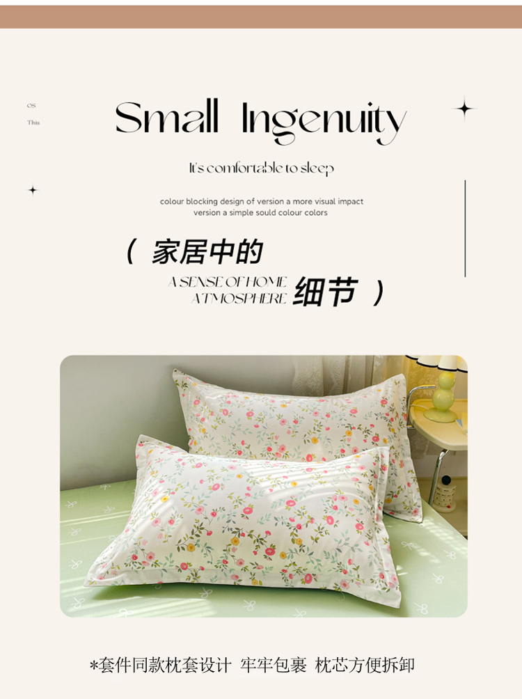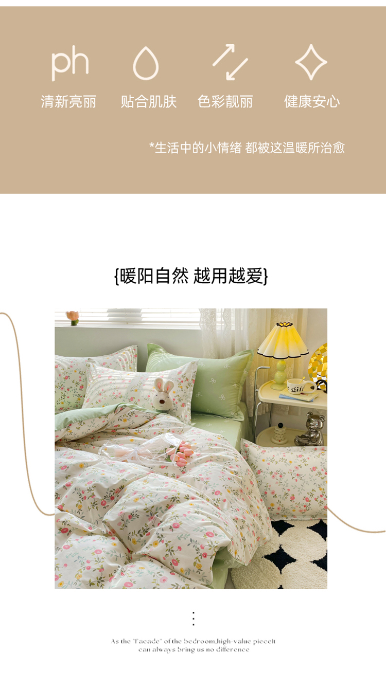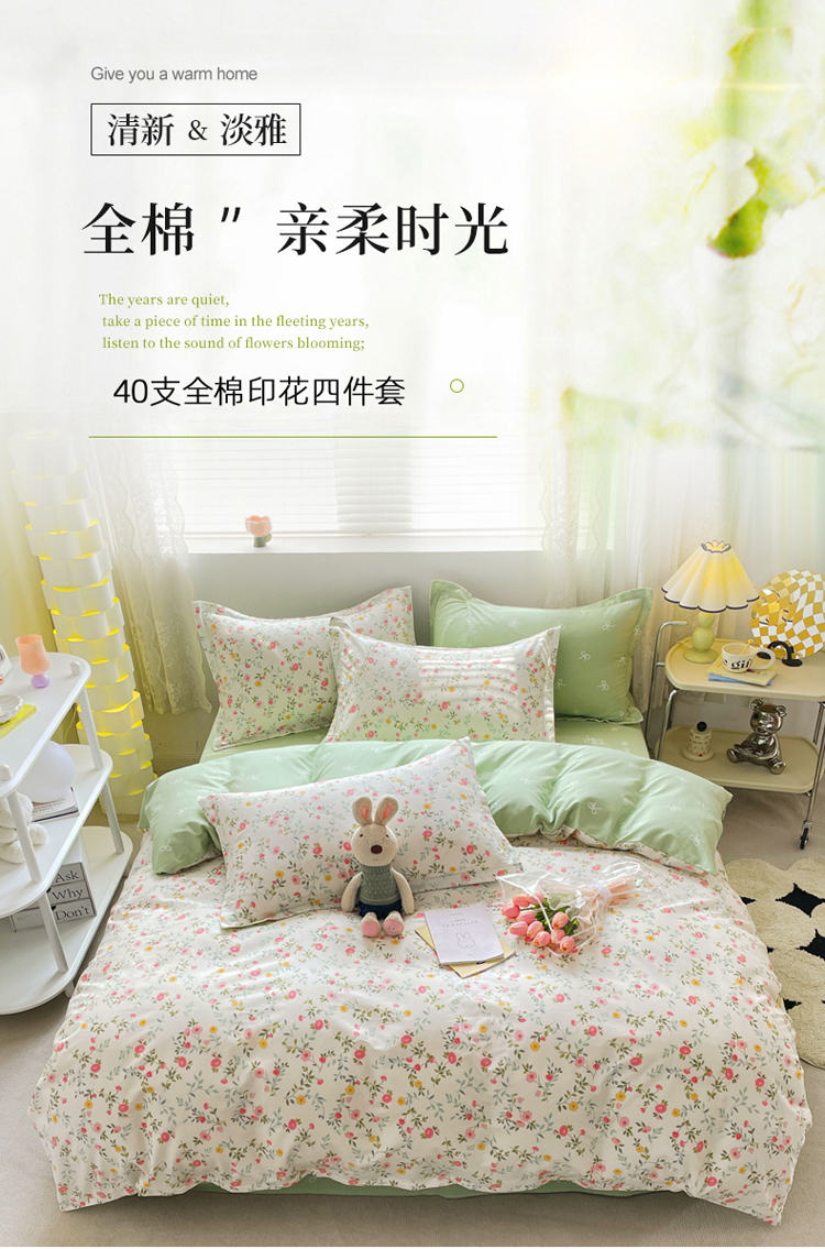 【洁丽雅】全棉印花四件套 细雨碎/花千束/花伴熊