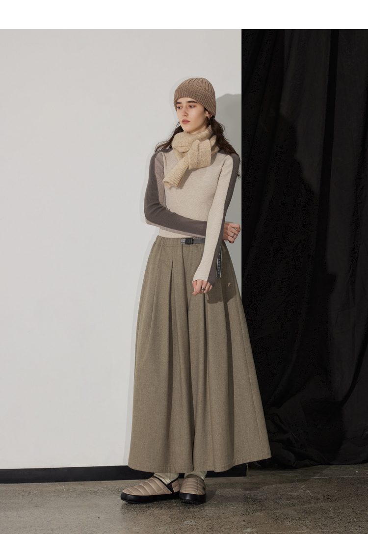 半圆/D24401706/加厚羊毛裤子女宽松阔腿裤裙裤